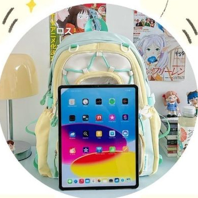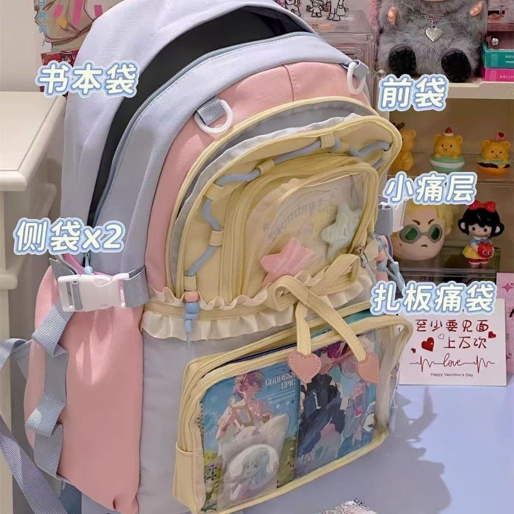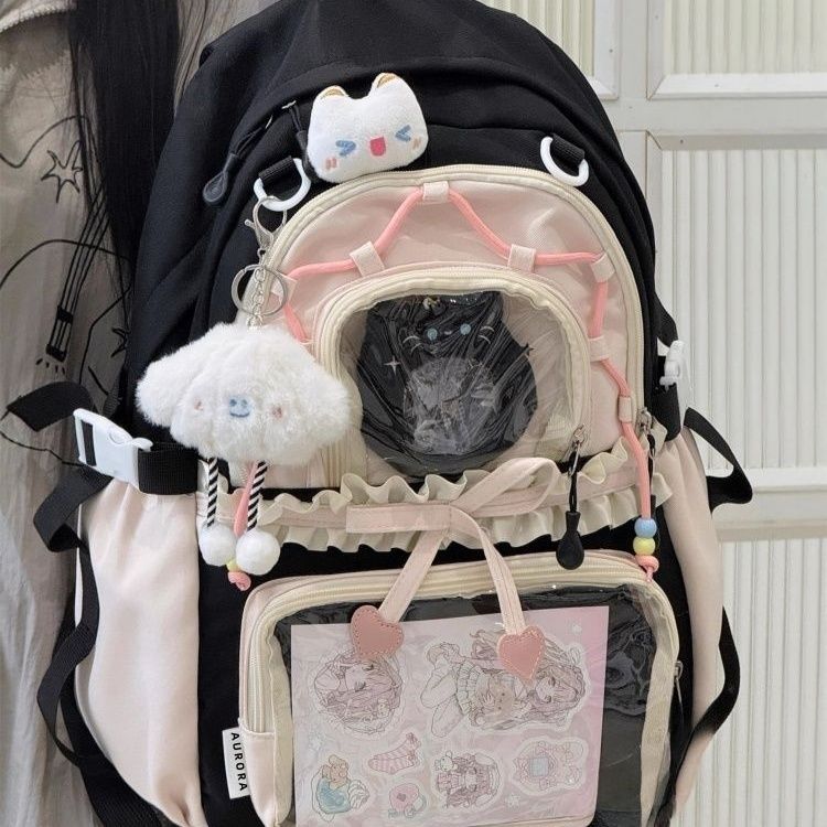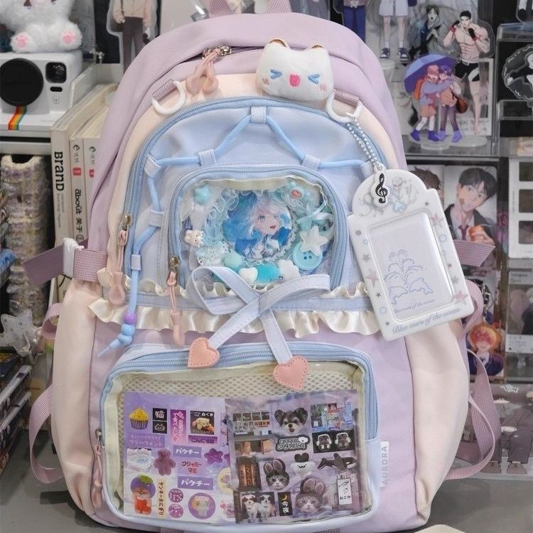 Versão Coreana Ins Mochila Fofa Bidimensional, Mochila De Nylon Para Estudantes De Grande Capacidade