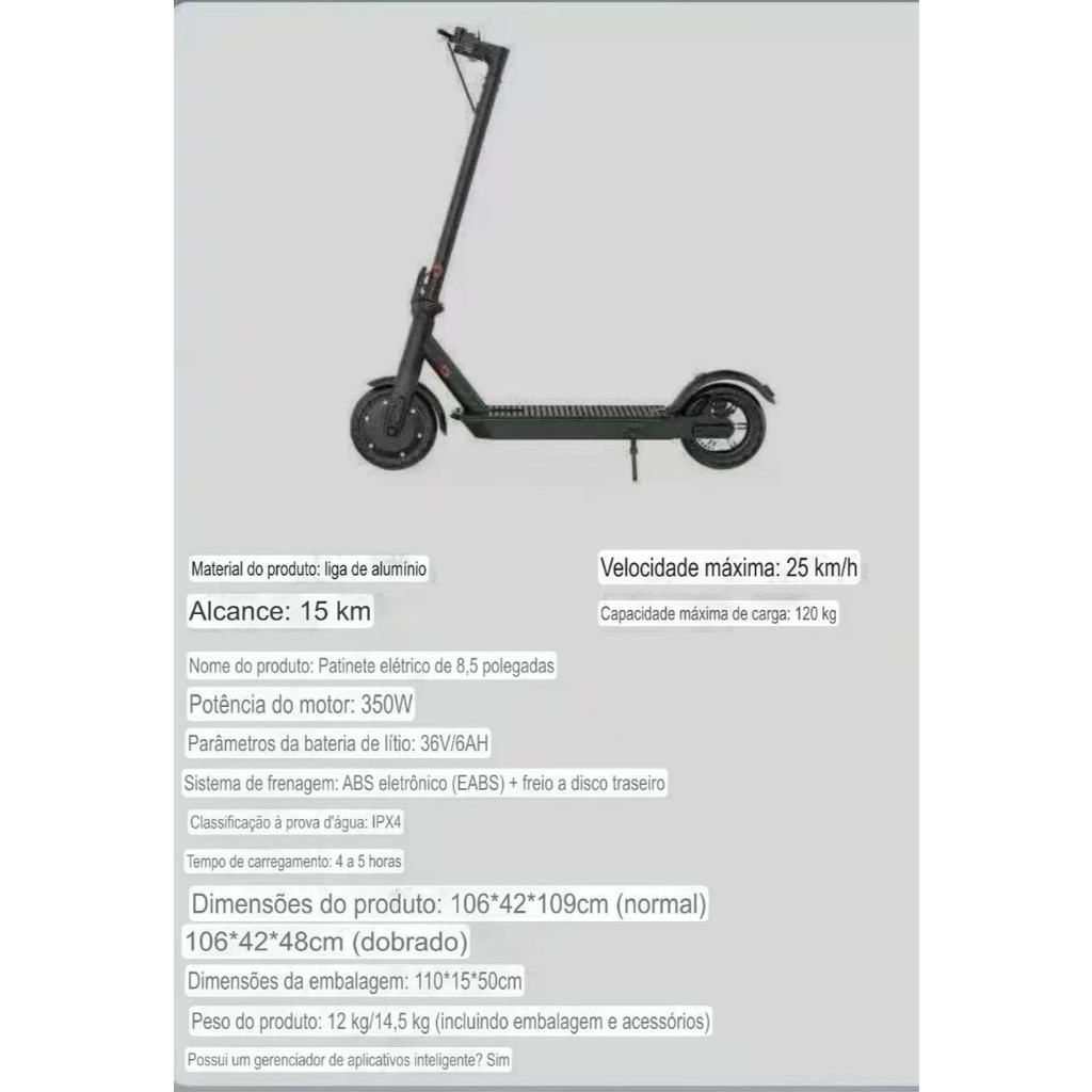 Patinete Elétrico De 350w Com Uma Bateria De Alta Alcança Velocidades De 25-30km/h, Com Autonomia De 4-5 Horas