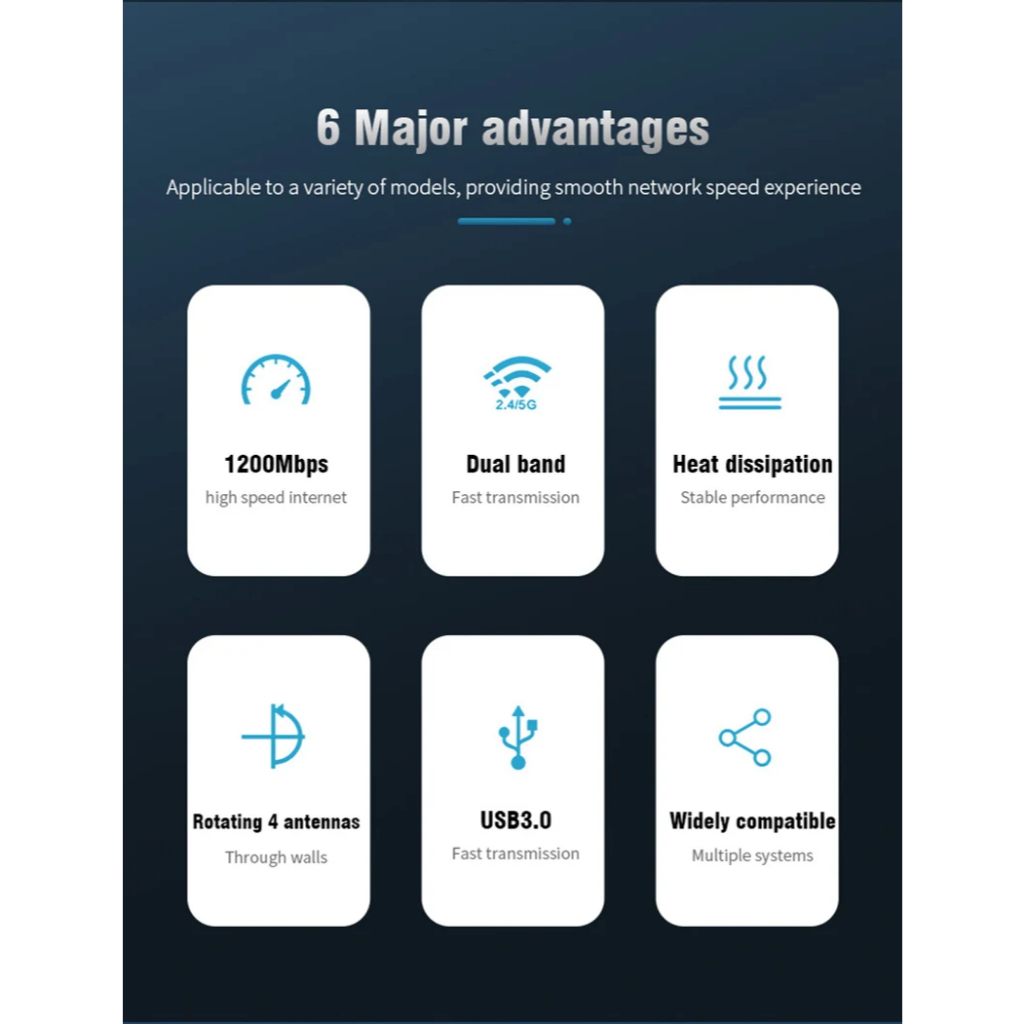Adaptador Wifi PC USB - Dual Band 5G/2.4G - 4 Antenas - USB 3.0