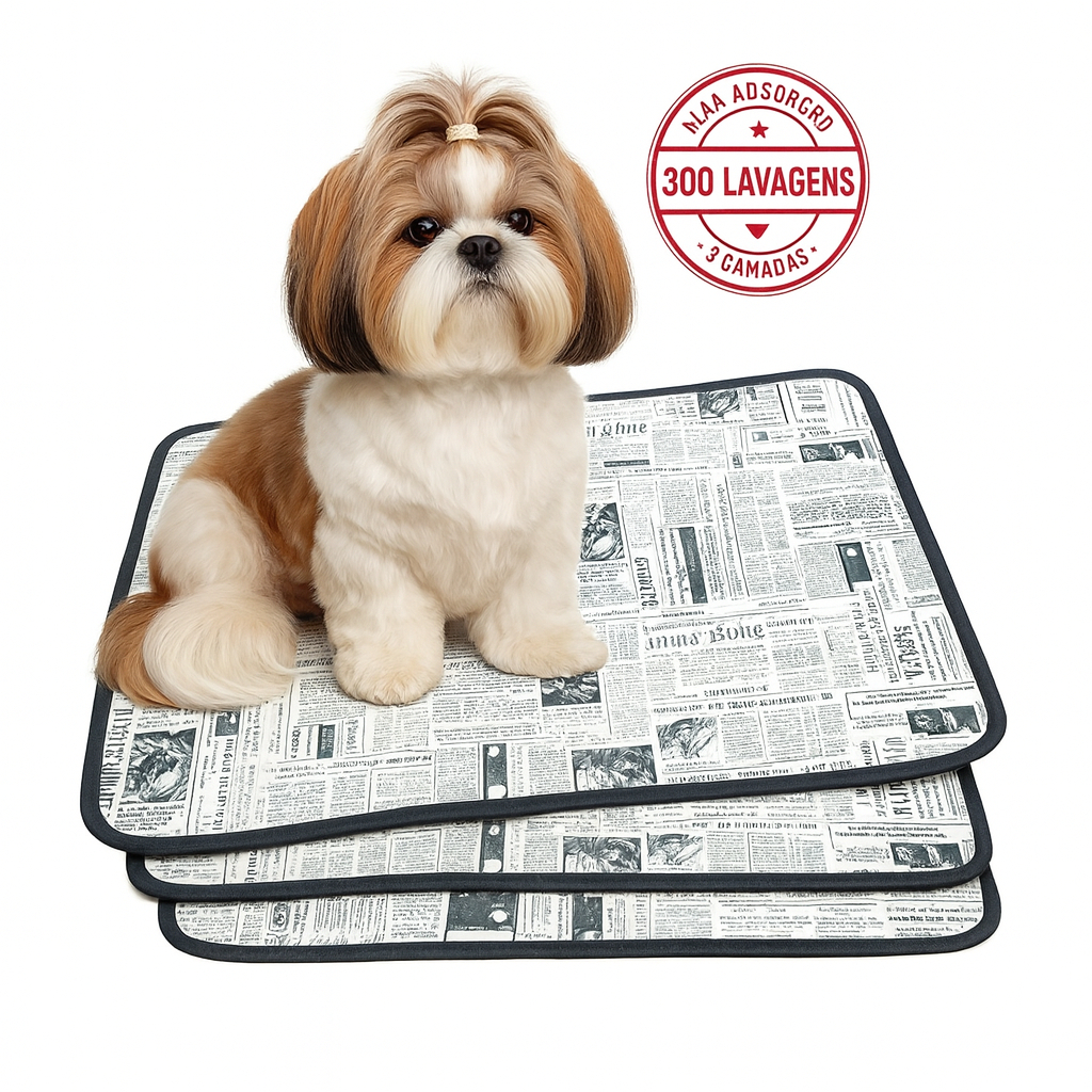 Kit 3 Tapetes Higiênicos Laváveis 70x50cm Jornal 3 Camadas Alta Absorção Cães