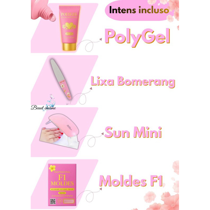 Kit Polygel Alongamento de Unhas Mnicure Poligel + Molde F1 + Lixa + Mini Cabine De Unha