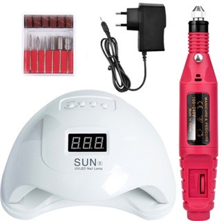 Kit Unhas Manicure Alongamento Cabine Led UV Gel Estufa Sun 5 Motor Lixadeira Caneta Lixadeira Iniciante
