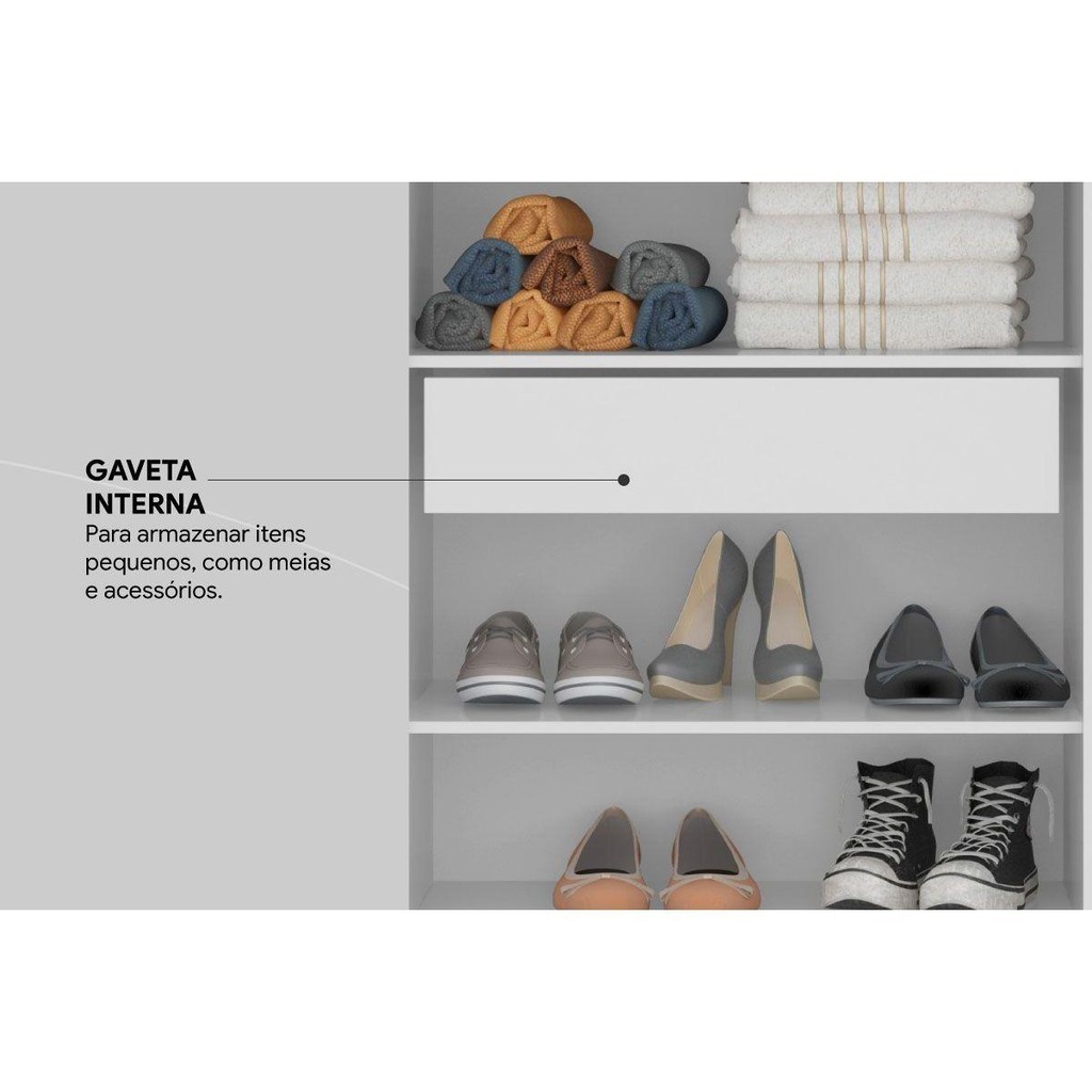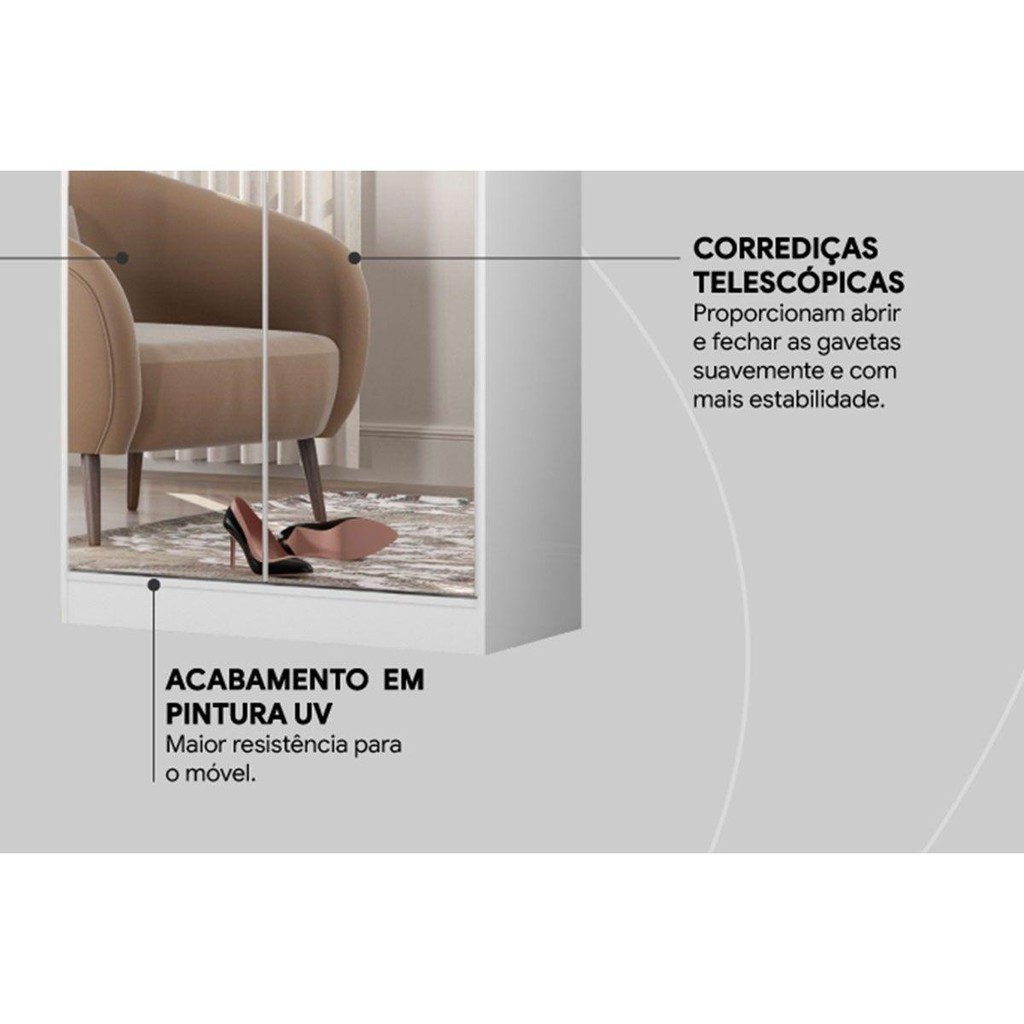 Armário Sapateira Quarto Grife 2 Portas e 1 Gaveta c/ Espelho Branco - Demóbile