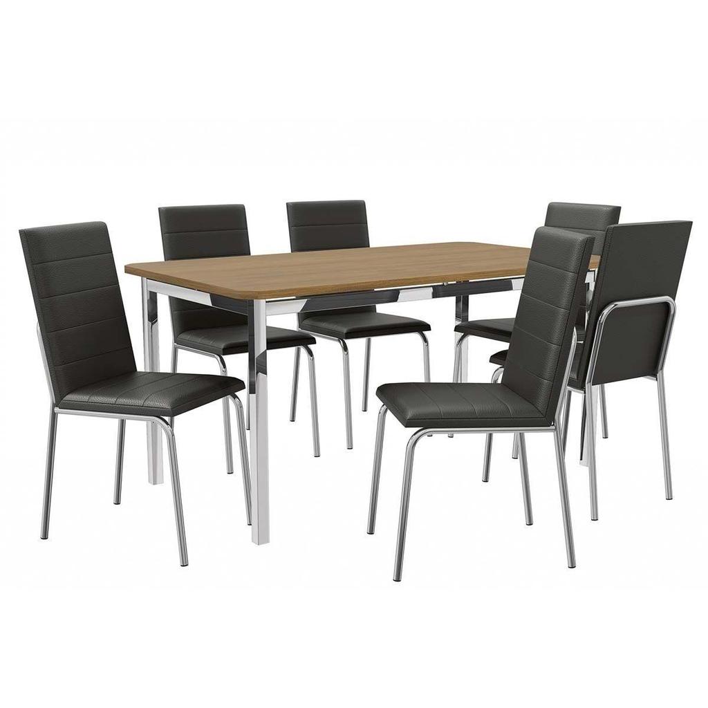 Mesa de Sala Jantar Reno c/ Tampo Madeira 160cm + 6 Cadeiras Amsterdã Cromada - Assento Preto 110 - Kappesberg