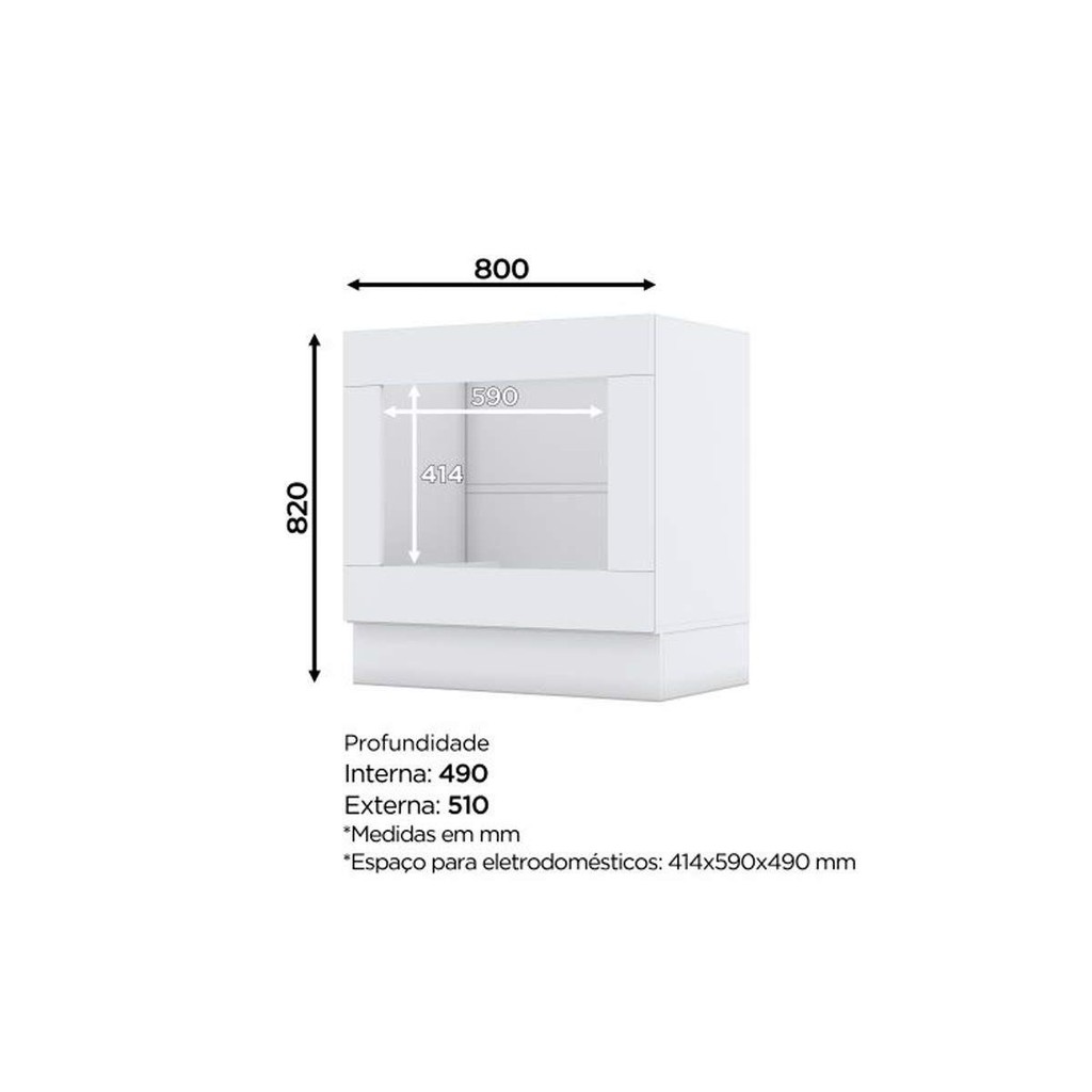 Balcão Cozinha p/Cooktop Americana Forno de Embutir s/ Tampo 80cm Branco - Henn