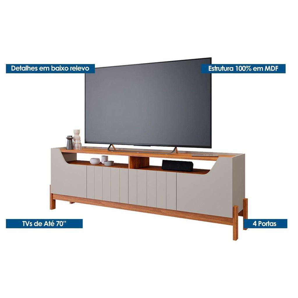 Home p/TV Rack Bancada Moema c/Painel Trend até 70 Pol Ripado c/Pés 180x197cm Off White/Nature - Permóbili