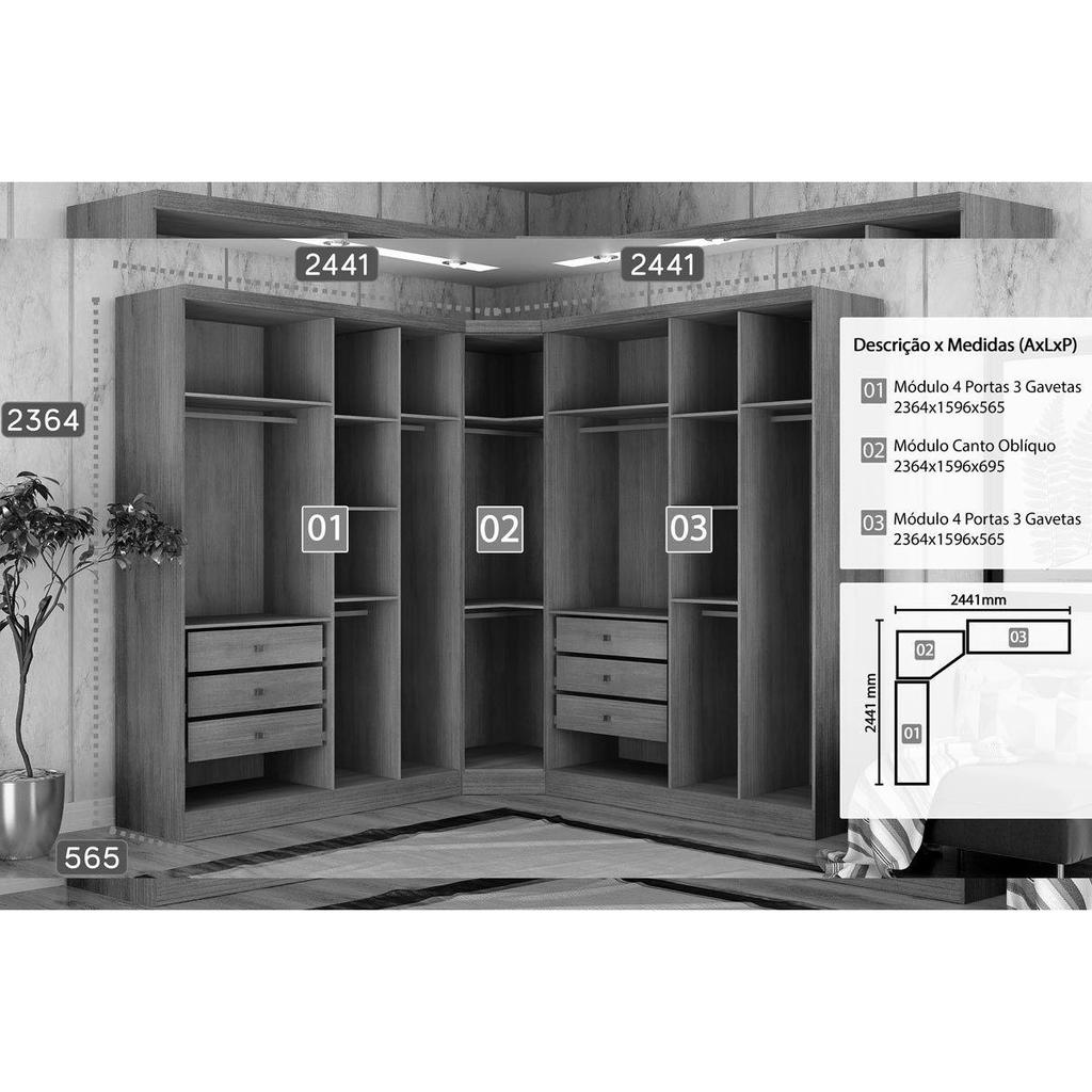 Quarto Casal Modulado Rizon 3 Peças (2 Guarda Roupas + 1 Closet) QC210 Branco - Novo Horizonte
