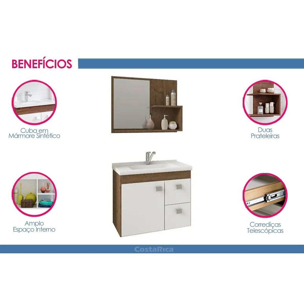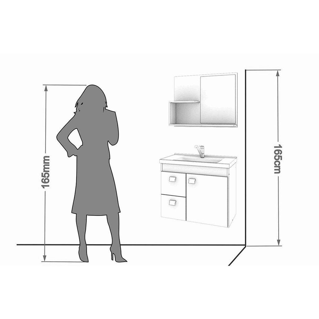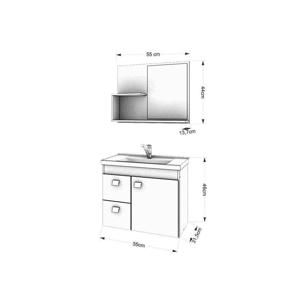 Conjunto de Banheiro Balcão Suspenso c/Cuba 55cm e Armário c/ Espelho Hortência Isa Branco/Preto - MGM