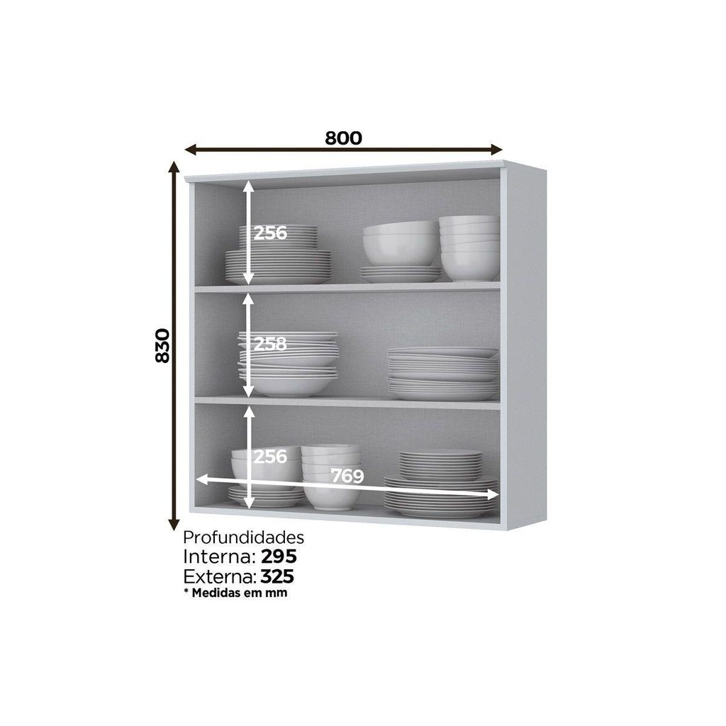Armário Aéreo p/ Cozinha Americana c/2 Portas 80cm Branco - Henn
