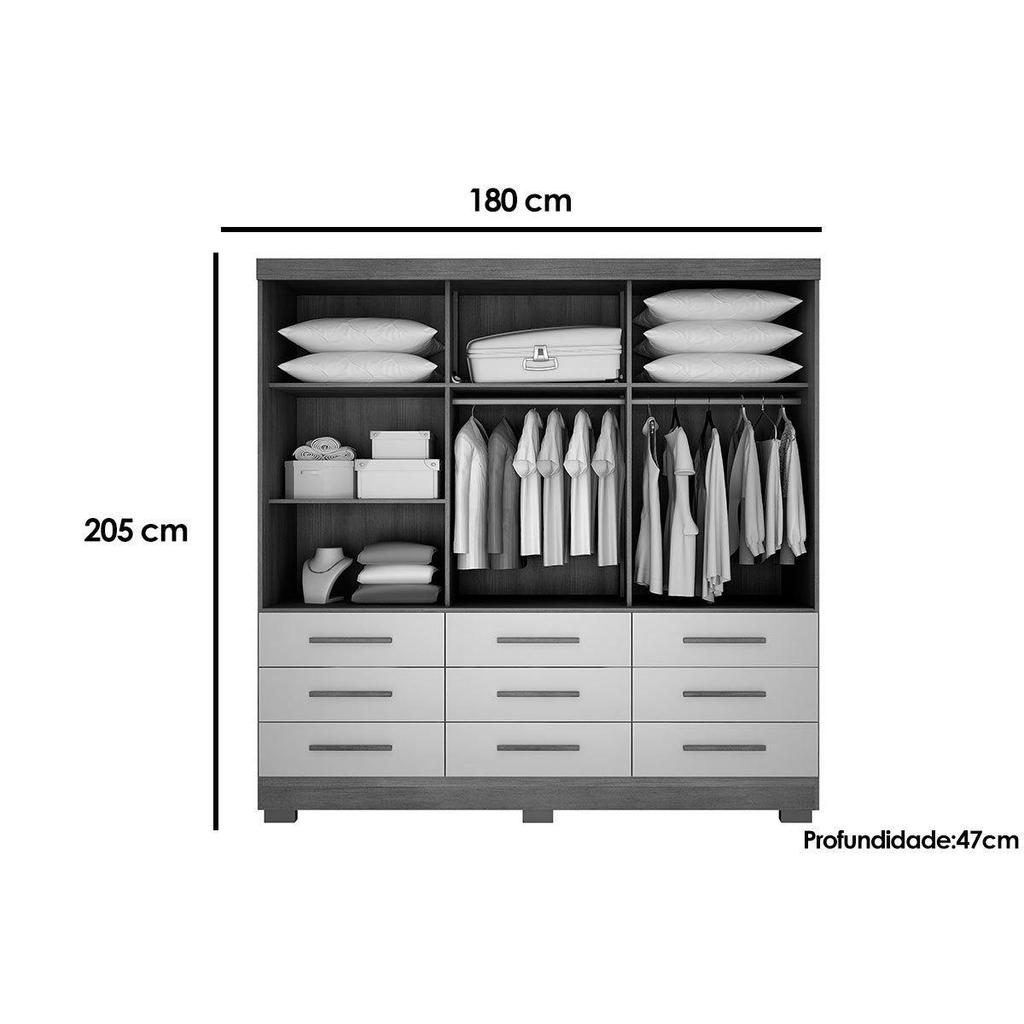 Guarda Roupa Solteiro 3 Portas e 9 Gavetas c/ Espelho Jequitibá/Buriti Branco - Novo Horizonte