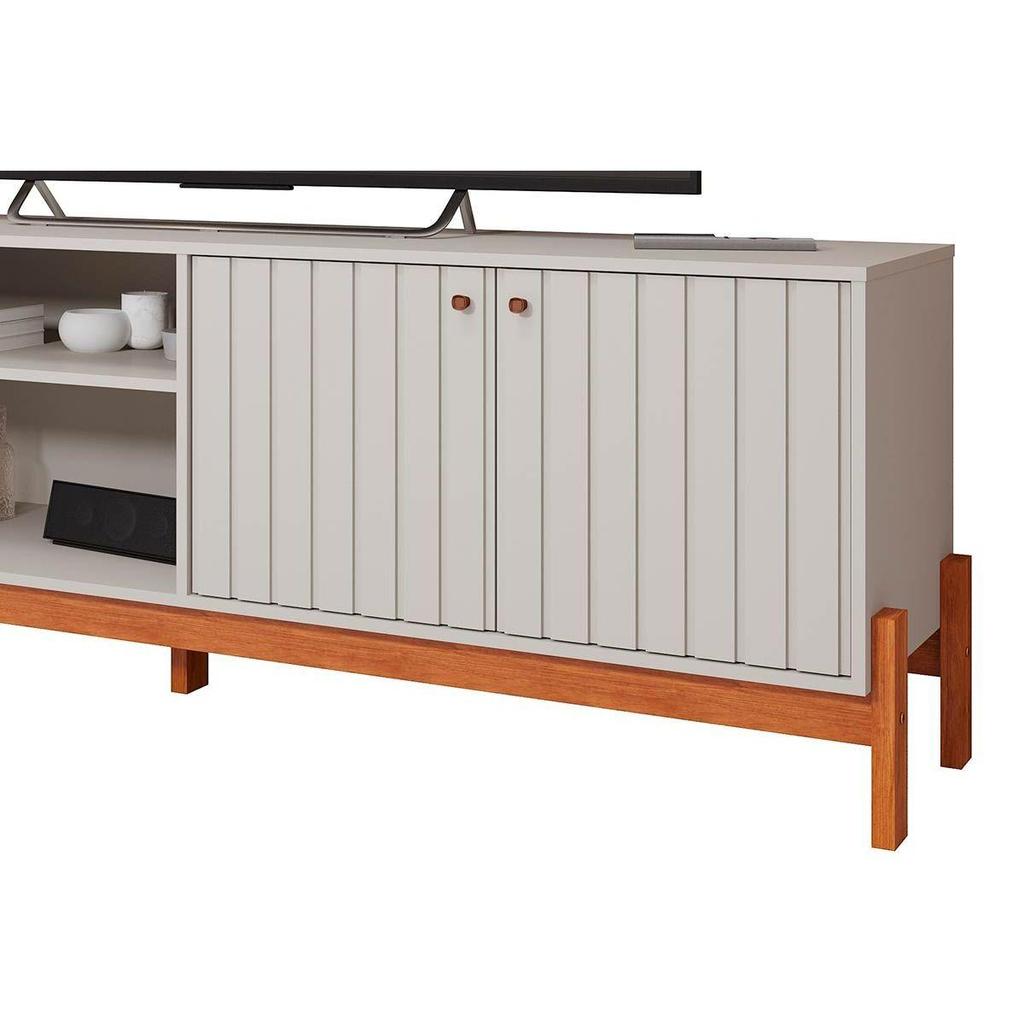Rack Bancada p/TV até 70 pol Holanda 100% MDF c/ Nichos e Pés 205cm Cinamomo - Permóbili