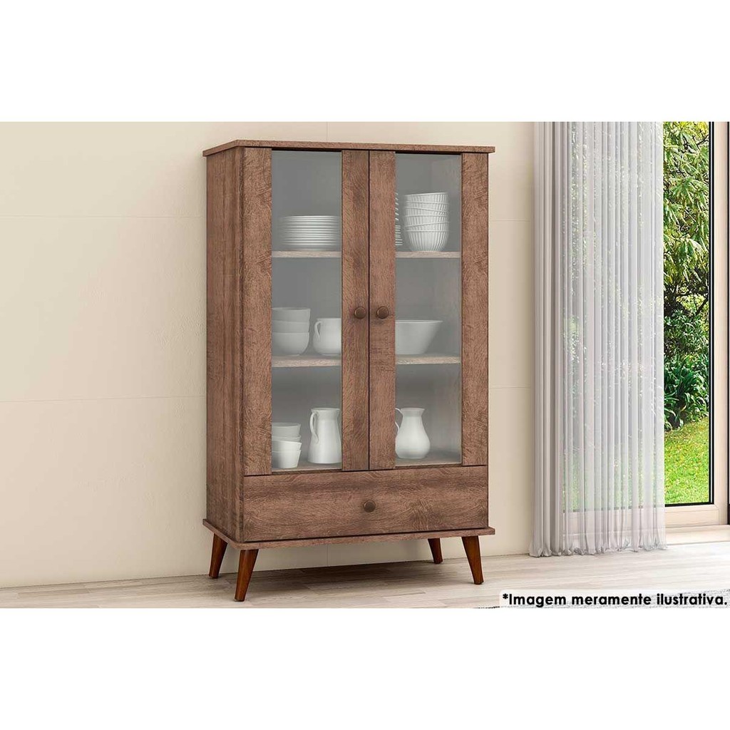 Cristaleira Sala Jantar RT3107 c/ 2 Portas e 1 Gaveta Rustico - Movelbento