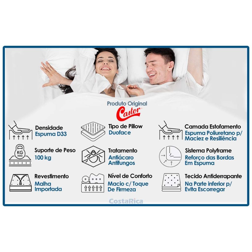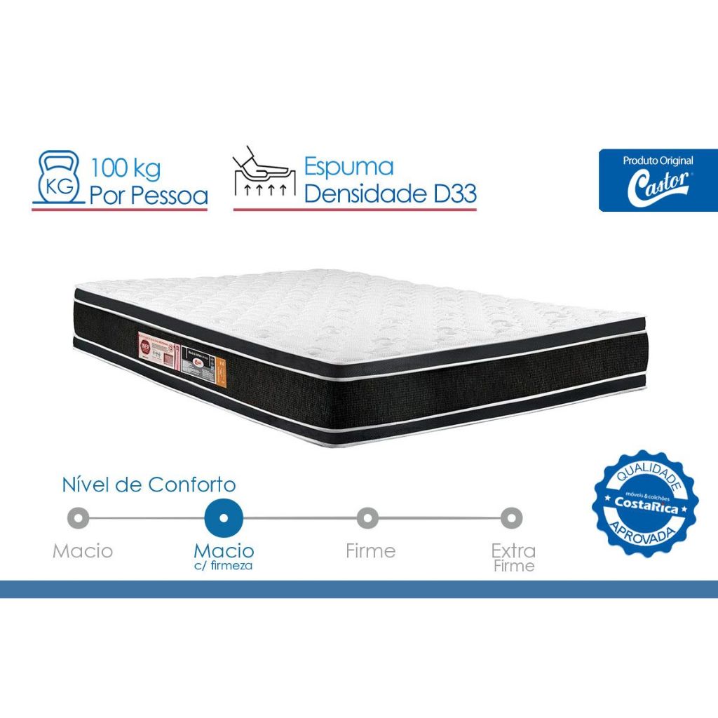 Colchão Viúva Espuma D33 Black White AIR Double Face Euro Pilllow (128x188x27) - Castor
