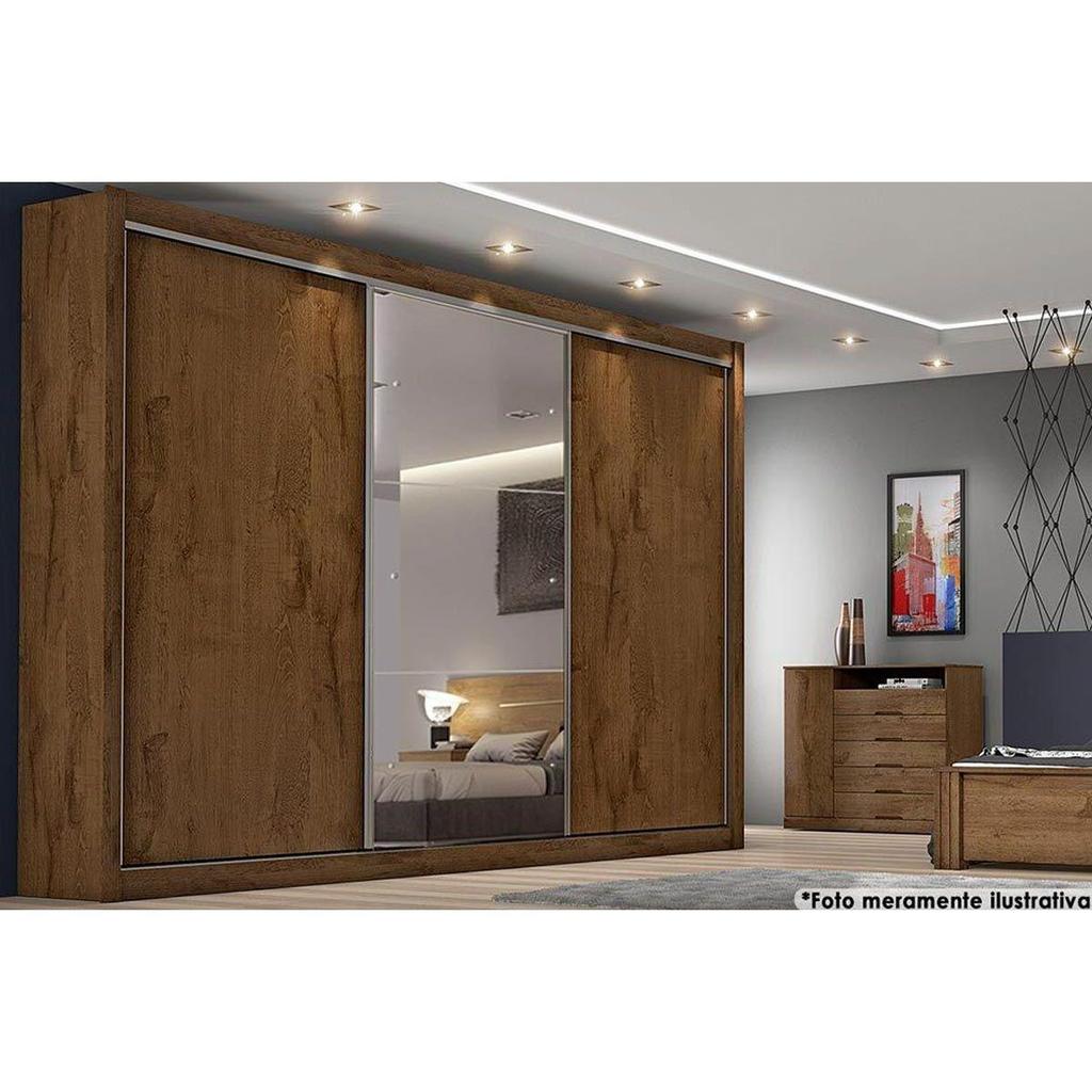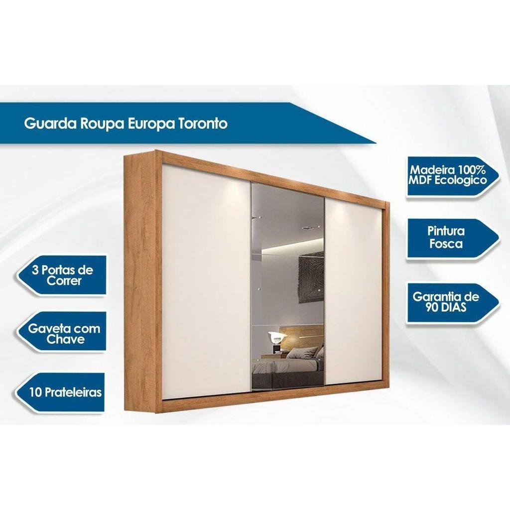 Guarda Roupa Casal 3 Portas de Correr e 6 Gavetas c/ 1 Espelho Toronto Branco - Europa