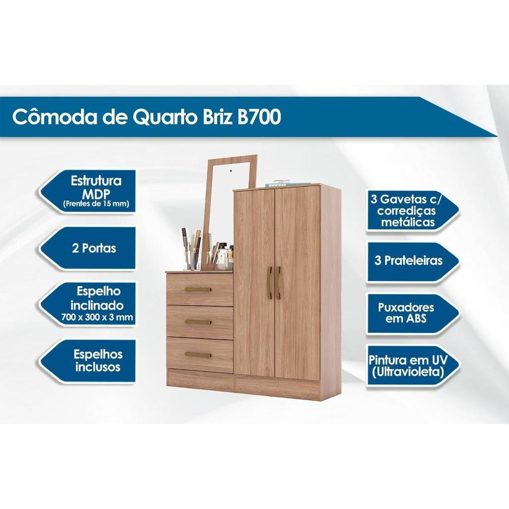 Cômoda de Quarto Briz B700 c/ 2 Portas e 3 Gavetas Jequitibá Brilho - Henn