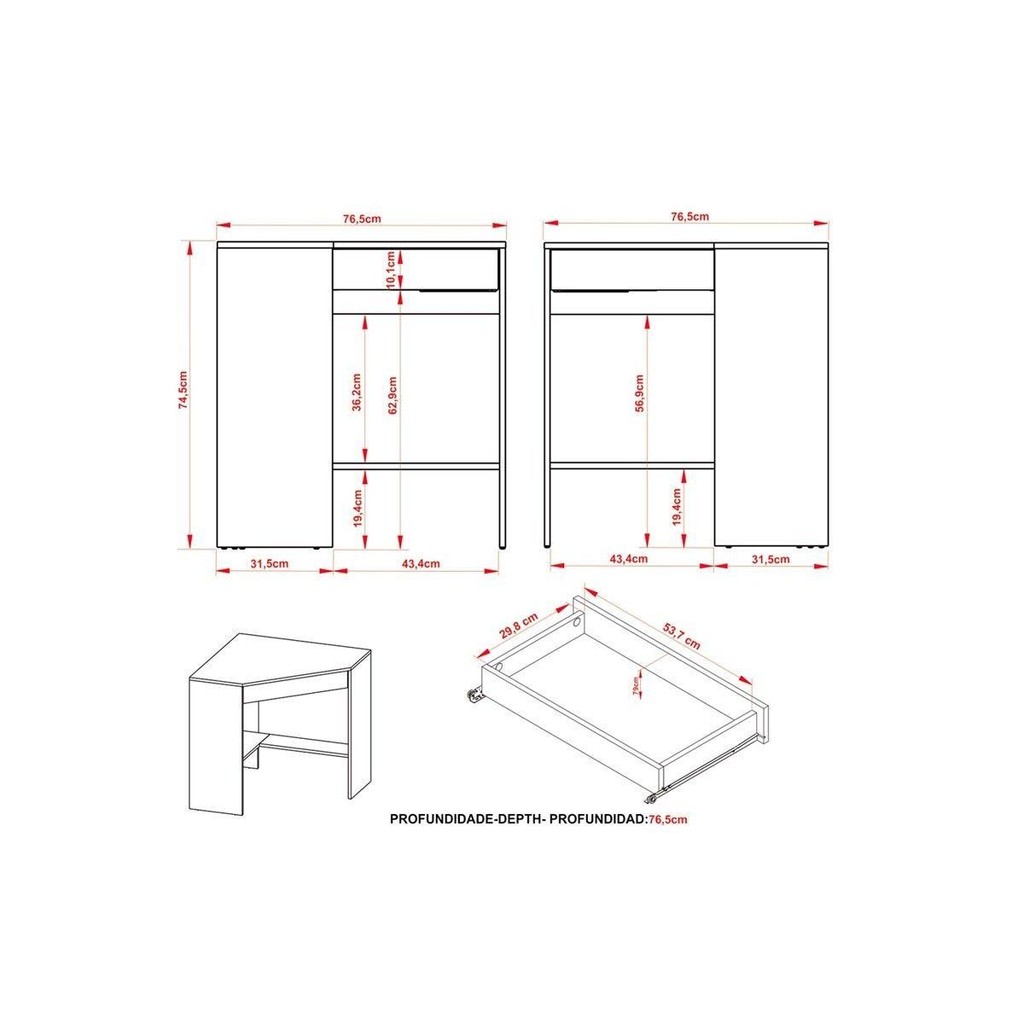 Mesa de Escritório Canto ME4169 c/ 1 Gaveta Branco - Tecno Mobili