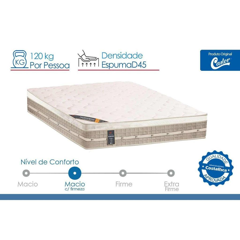 Conjunto Box Baú Casal: Colchão Molas Castor Bonnel Premium Tecnopedic + Base CRC Suede Clean (138x188)