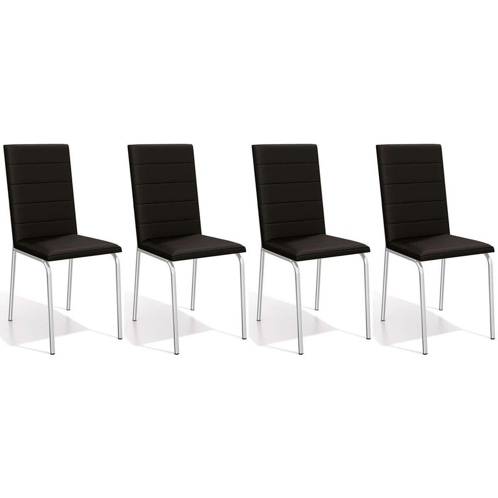 Cadeira Sala de Jantar Amsterdã C091 Kit 4 Un Cromada - Assento Preto 110 - Kappesberg