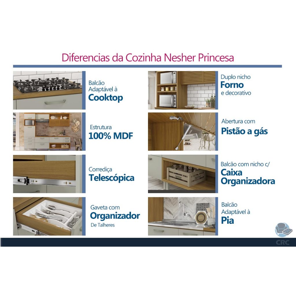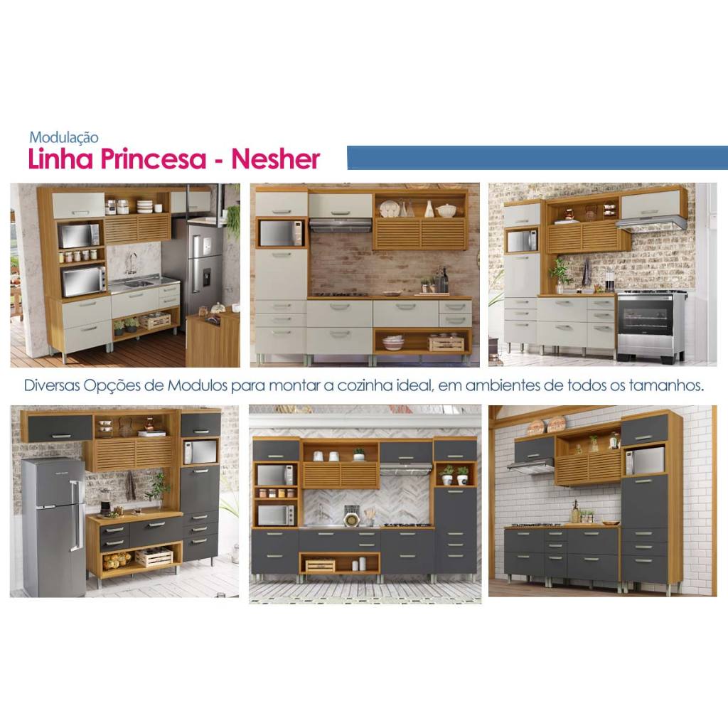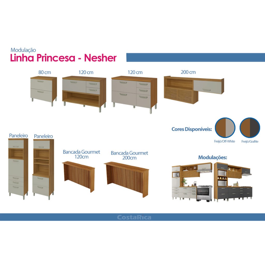 Cozinha Completa Princesa 3 Peças (2 Balcões + 1 Aéreo) C3P29 Freijo/Grafite - Nesher