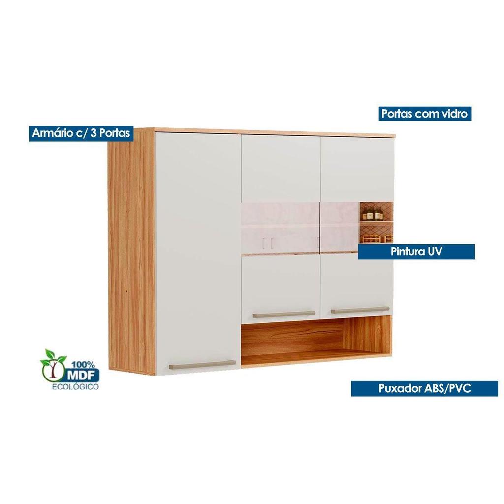 Armário de Cozinha Modulado Nápoli Prime 3 Portas ( 2 c/ Vidros Reflecta) 120cm Amendoa/Chumbo - Ronipa