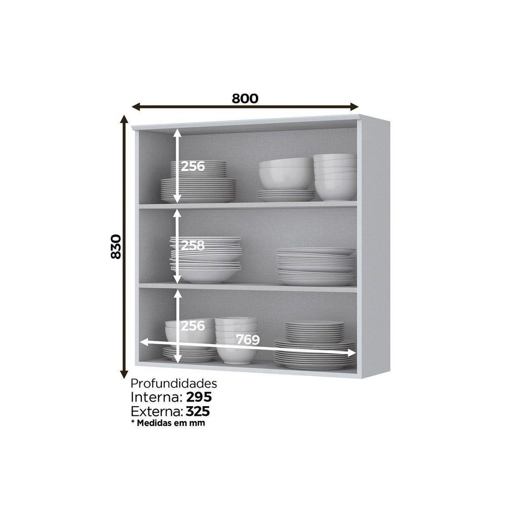 Armário Aéreo Cozinha Modulado Americana c/ 2 Portas 80cm Branco - Henn