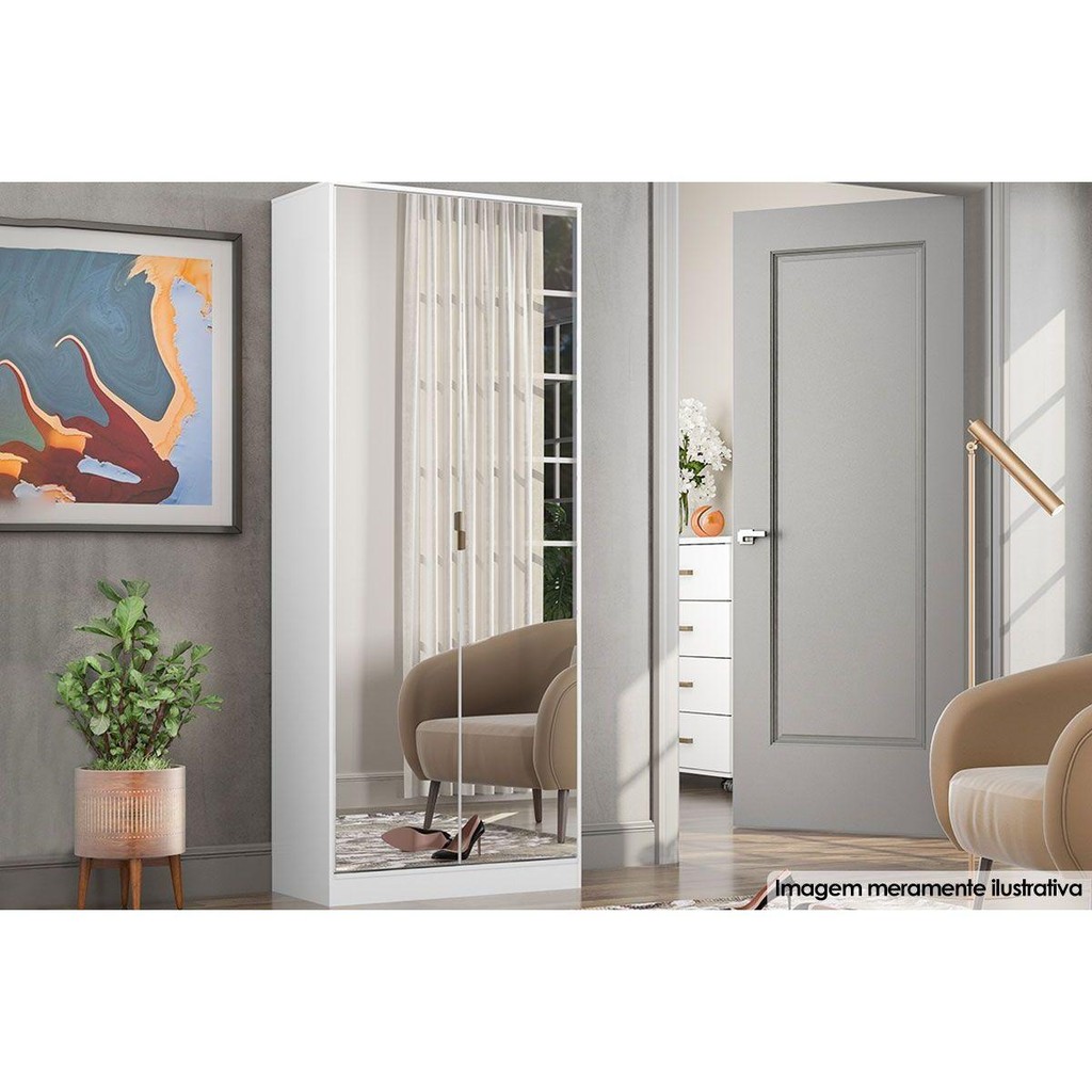 Armário Sapateira Quarto Grife 2 Portas e 1 Gaveta c/ Espelho Branco - Demóbile