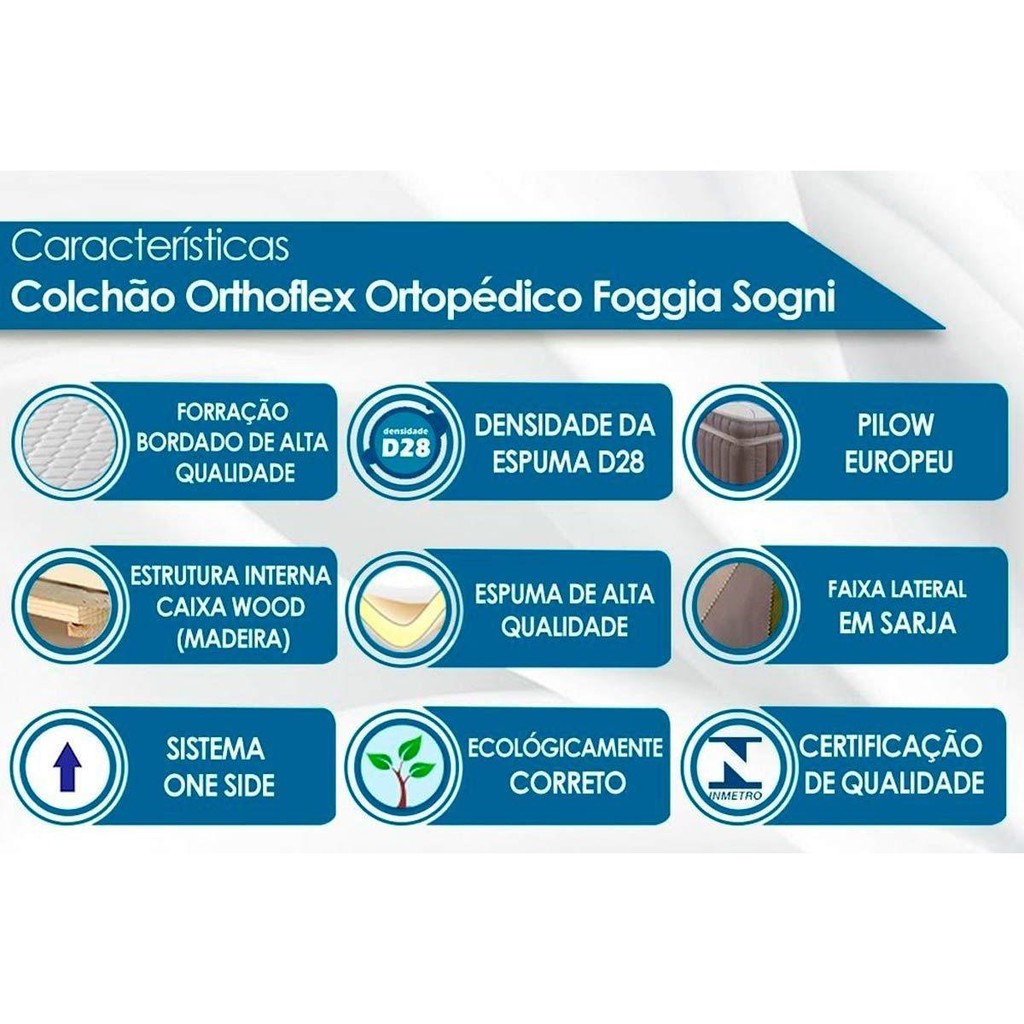 Cama Box Baú Solteiro: Colchão Ortopédico Orthoflex Foggia Sogni Unic Face + Base CRC Courano White(88x188)