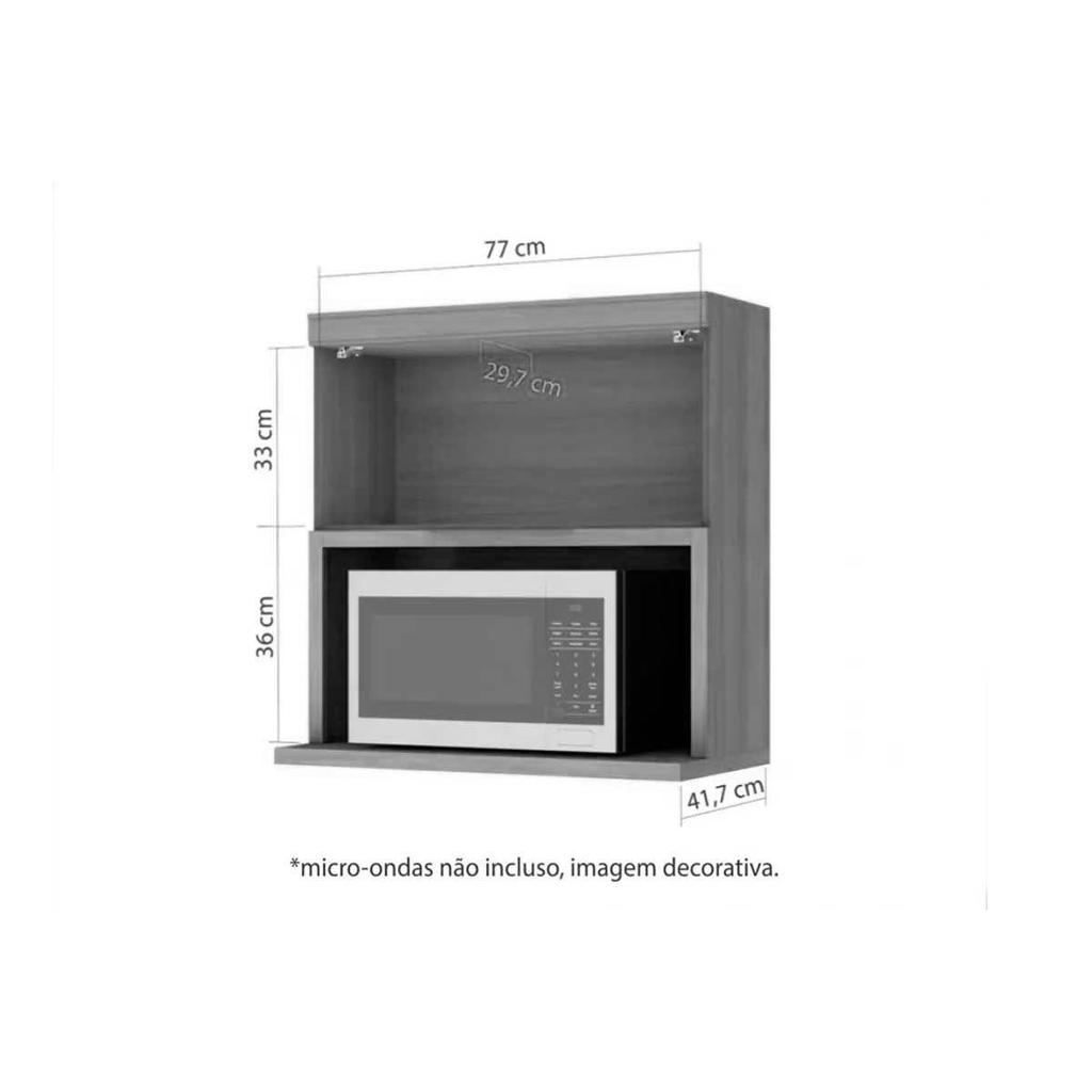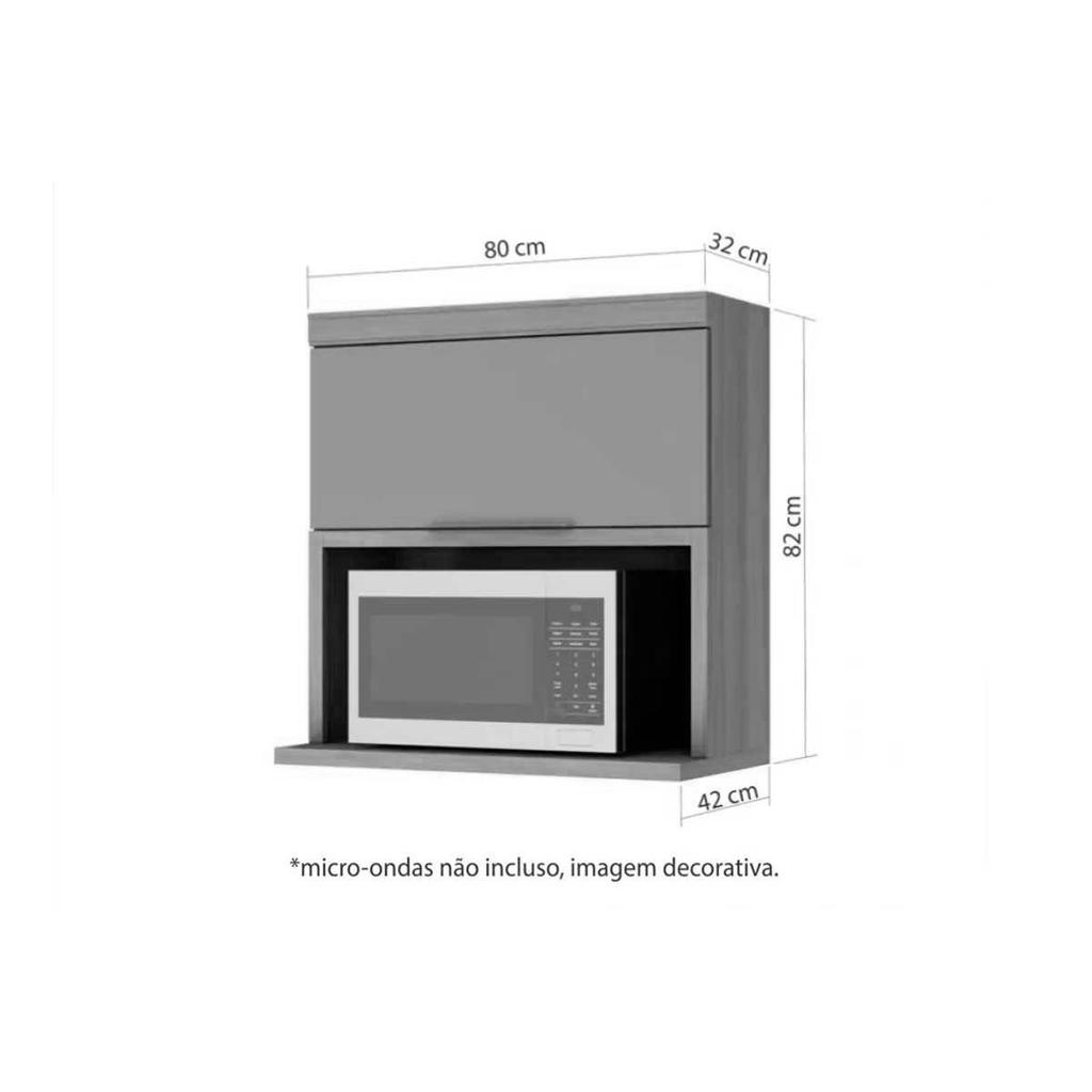 Armário Aéreo p/ Cozinha Marquesa c/ 1 Porta Basculante e nicho Microondas 80cm Nature/Verde - Nesher