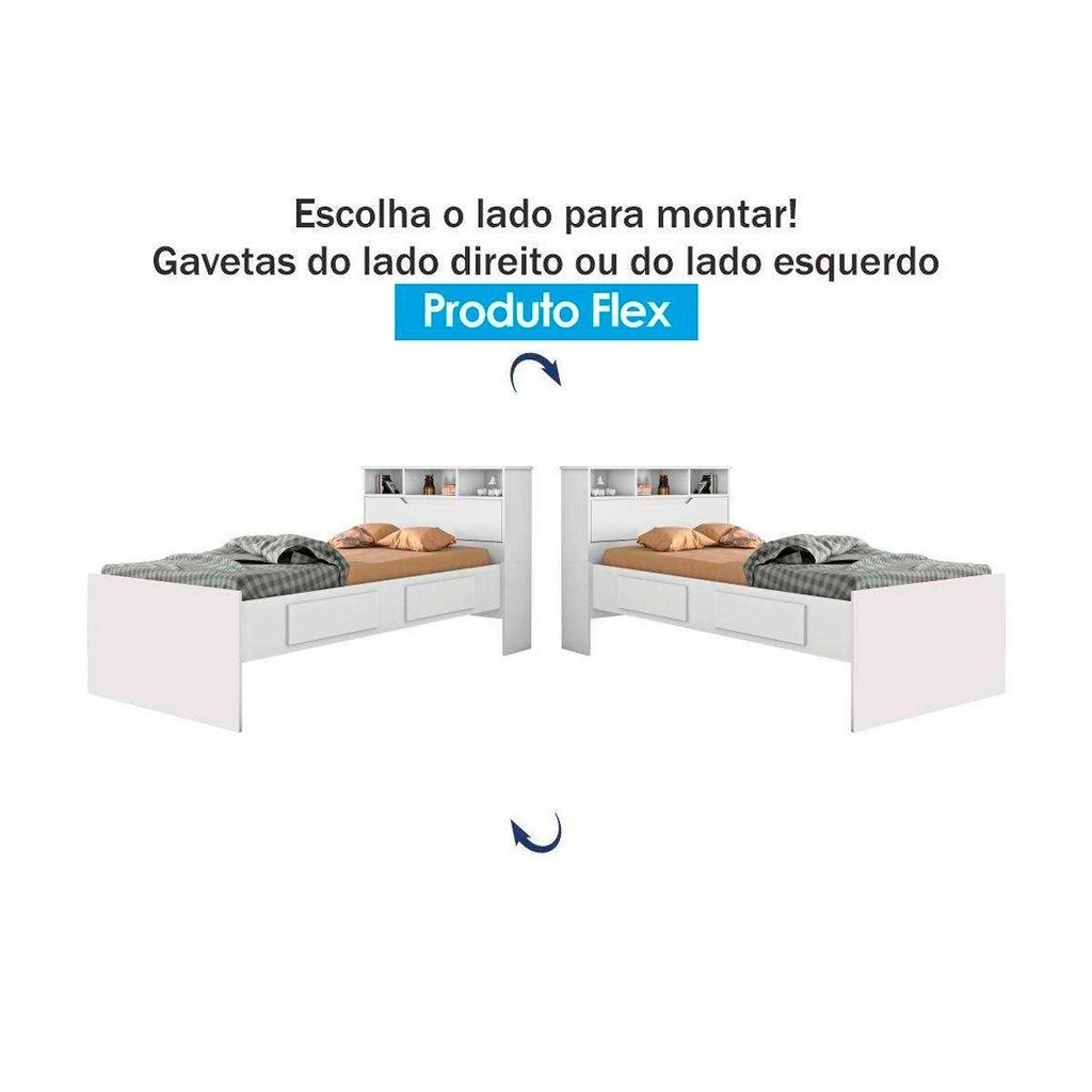 Cama Solteiro Ravena 2 Gavetas c/Auxiliar Branco - Conquista