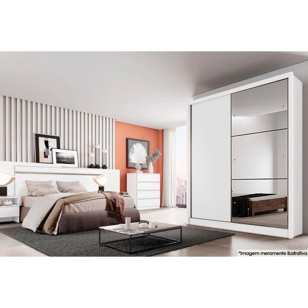 Guarda Roupa Solteiro 2 Portas de correr e 3 Gavetas c/Espelho Thor Plus Branco - Novo Horizonte