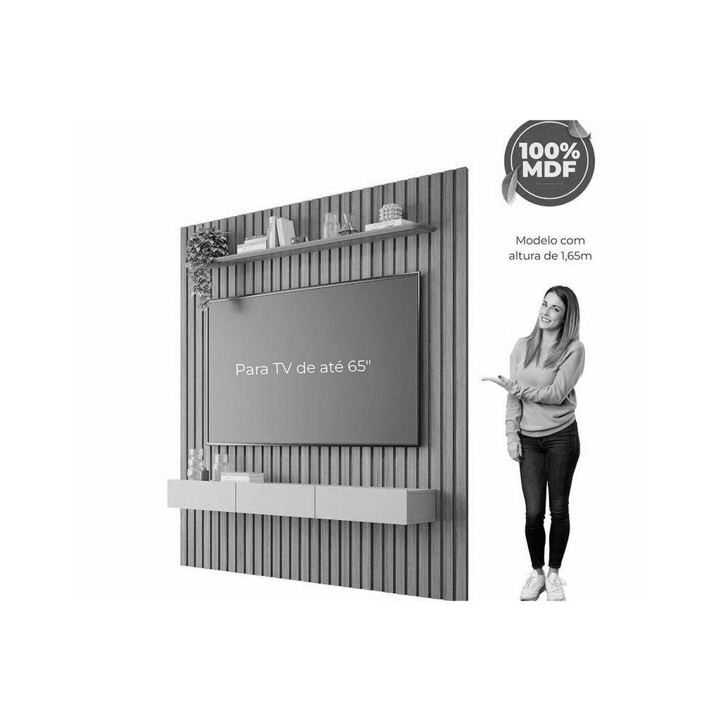 Painel Quarto p/ TV até 65 Pol Maragogi Ripado c/ 1 Porta e 2 Gavetas 185x220cm Cinamomo/Off White - Permóbili