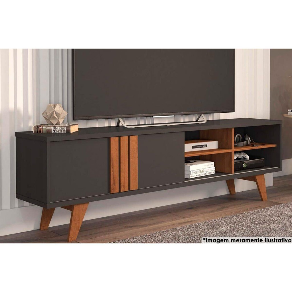 Rack Bancada p/ TV até 60 Pol Paraty c/ 1 Porta e 4 Nichos 180cm Cinamomo/Off White - Permóbili