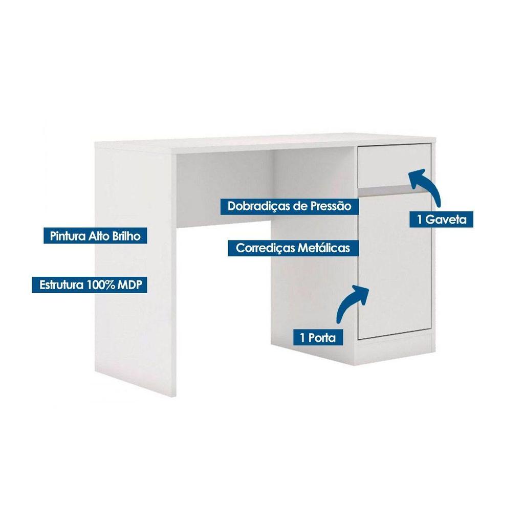 Mesa Escrivaninha Juvenil Office Morada c/ 1 Porta e 1 Gaveta Branco - Demóbile