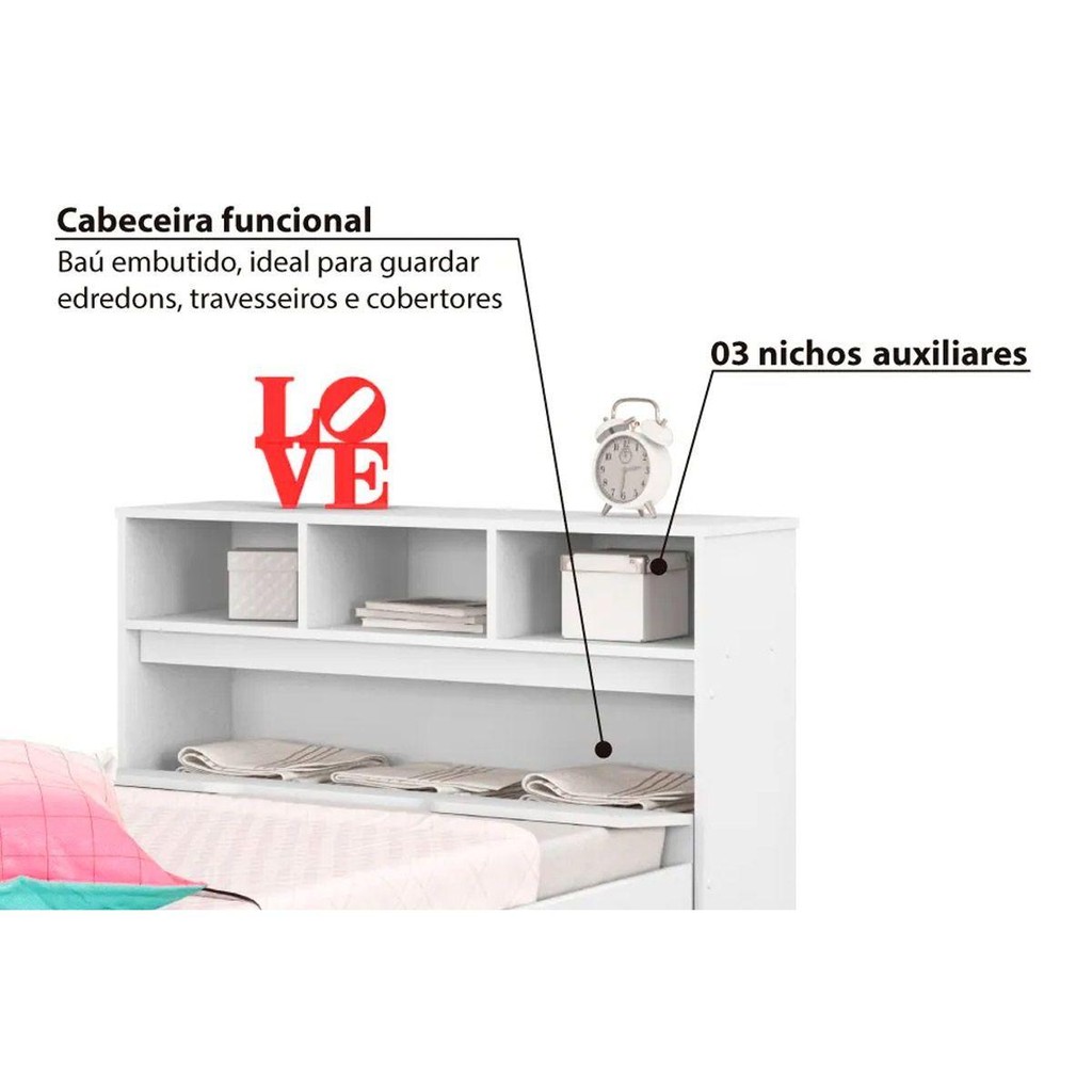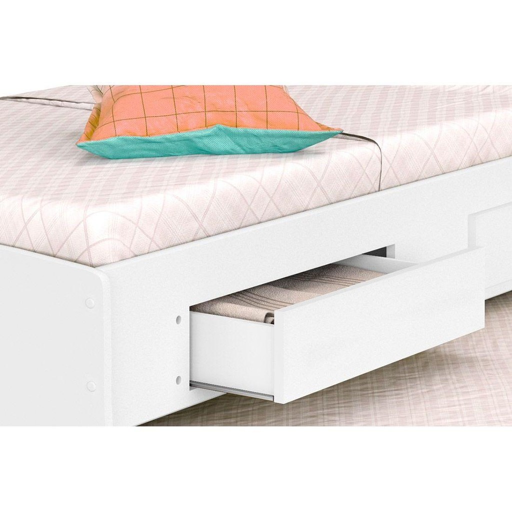 Bicama Solteiro Ravena c/ 2 Gavetas e Auxiliar Branco - Conquista