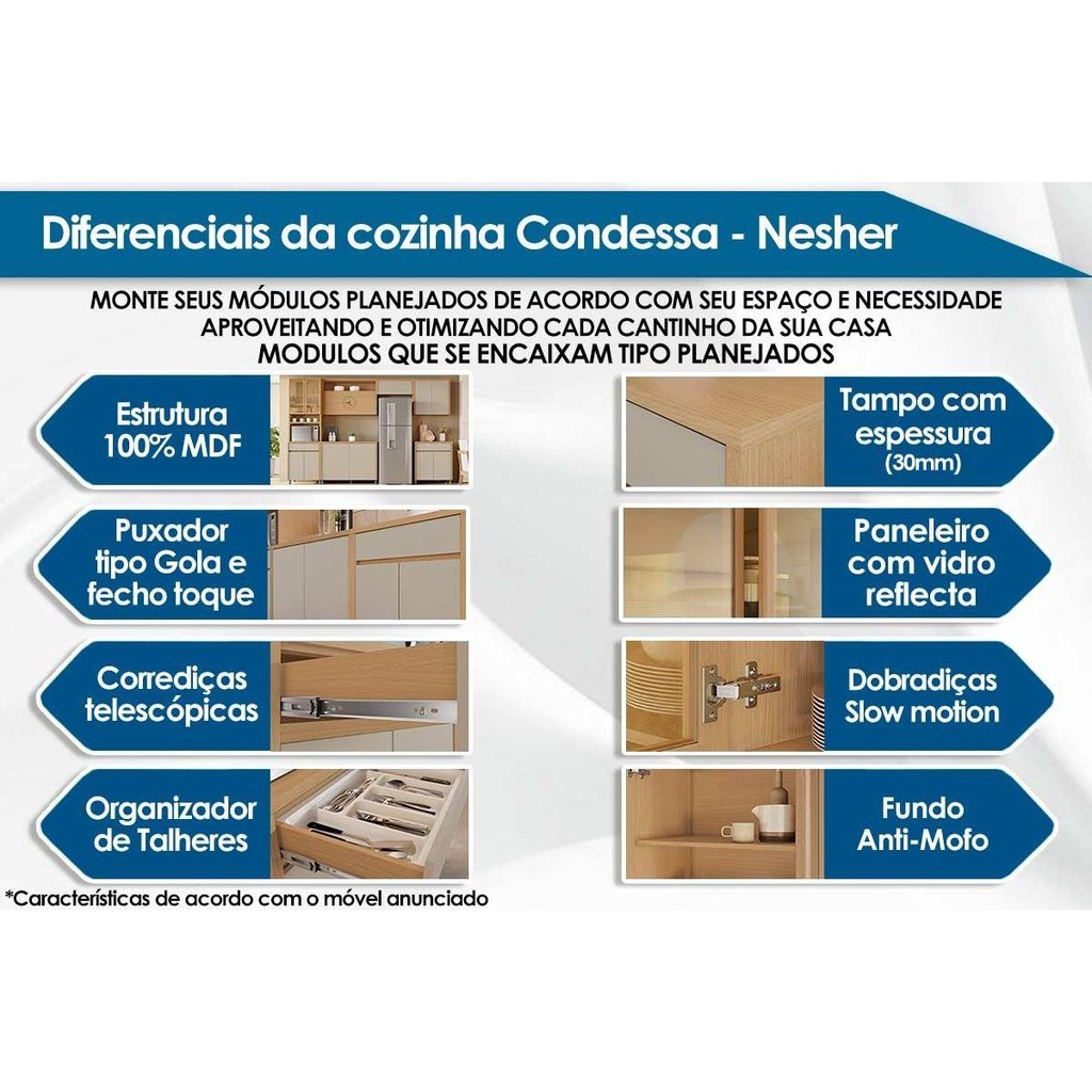 Gabinete de Cozinha Modulado Balcão c/ Tampo Condessa c/ 2 Portas e 1 Gaveta 80cm Carvalho/Cinza - Nesher