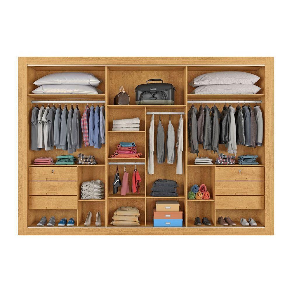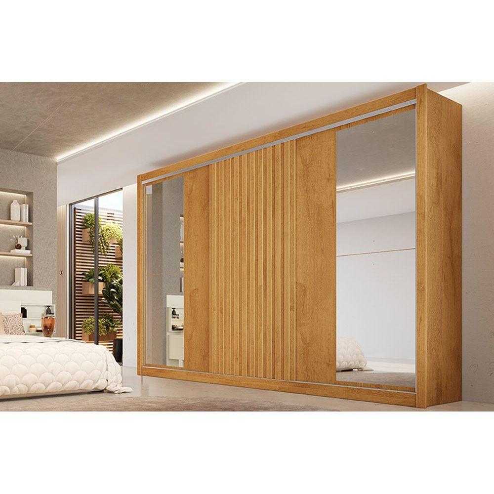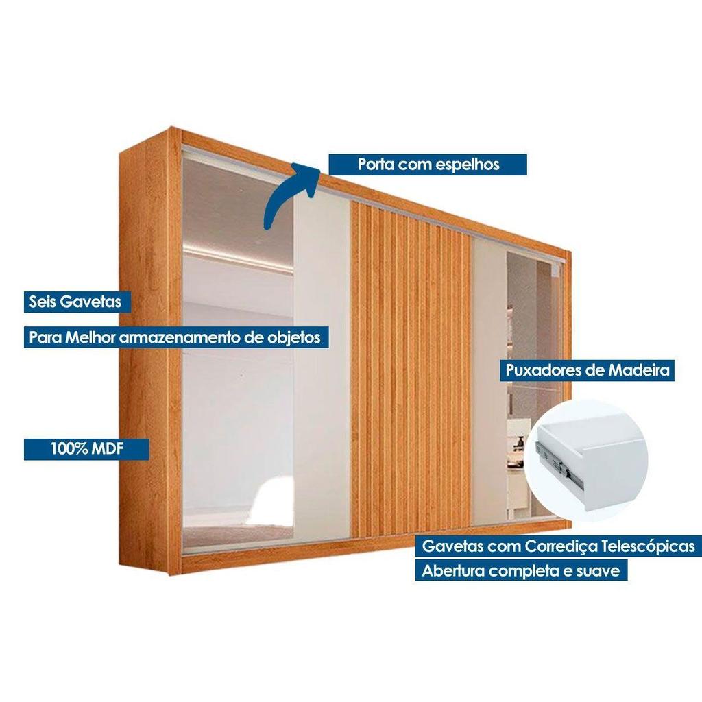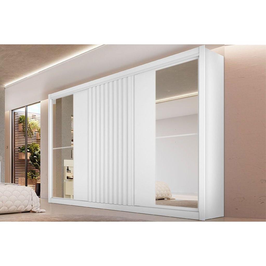 Guarda Roupa Casal 3 Portas de Correr e 6 Gavetas c/2 Espelhos Ripado Vitória Branco Acetinado - Europa