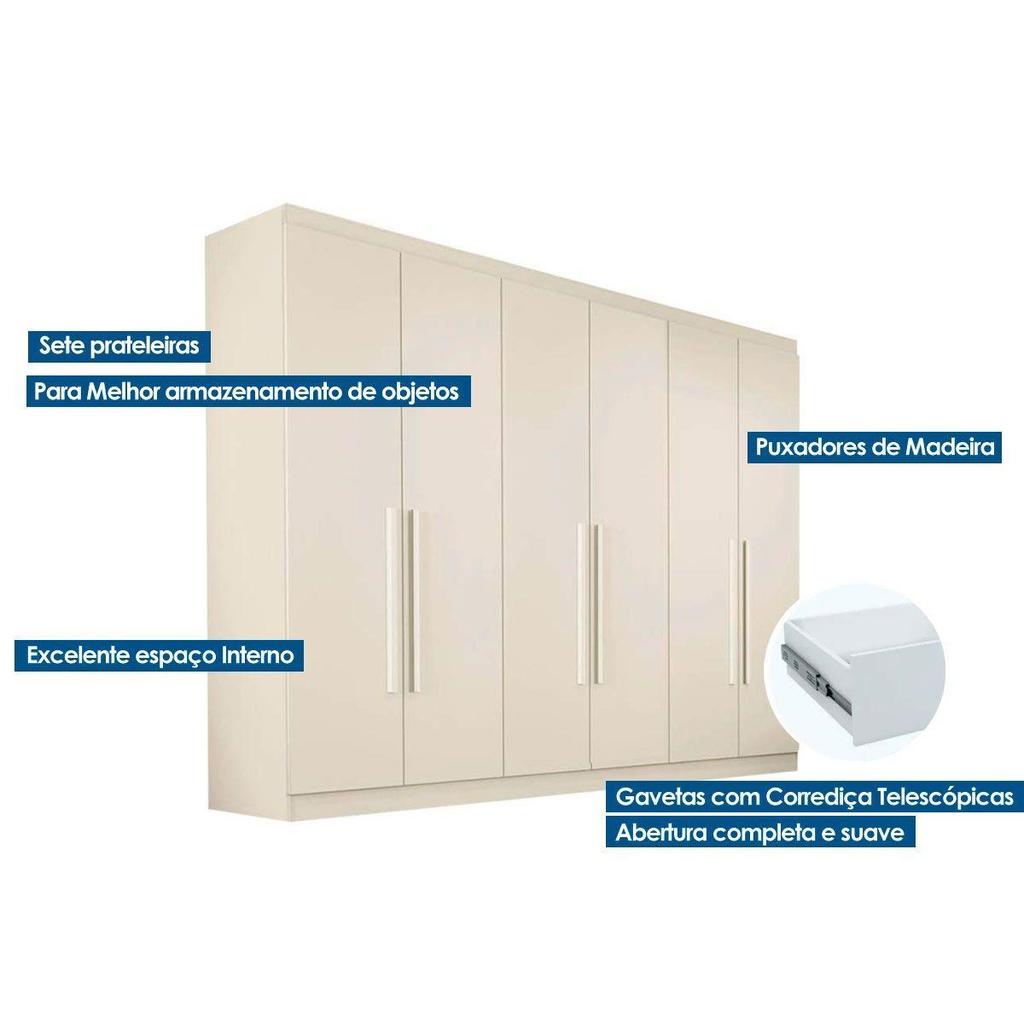 Guarda Roupa Casal 6 Portas e 6 Gavetas Oslo Off White - Europa