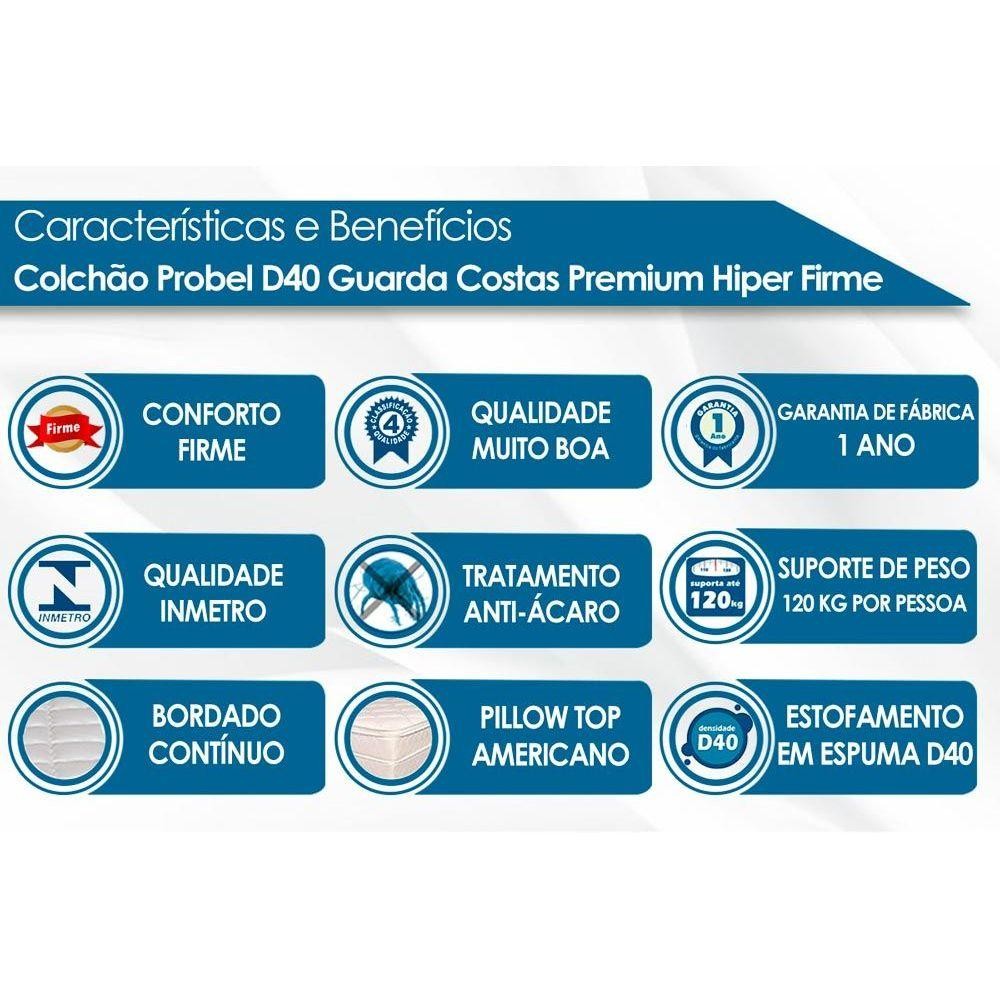 Colchão Solteiro Espuma D40/20 Guarda Costas Premium Hiper Firme Pillow Top Black (78x188x24) - Probel