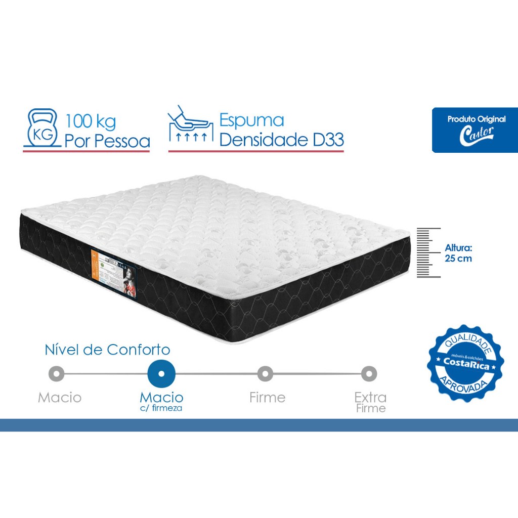 Colchão Solteiro Espuma D33 Black White Double Face (88x188x25) - Castor