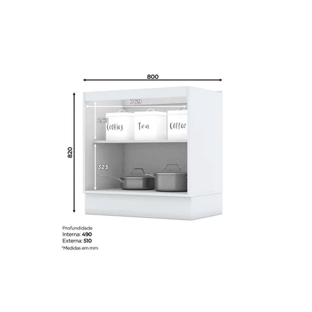 Balcão de Cozinha Americana 2 Portas c/Tampo 80cm Cinza - Henn