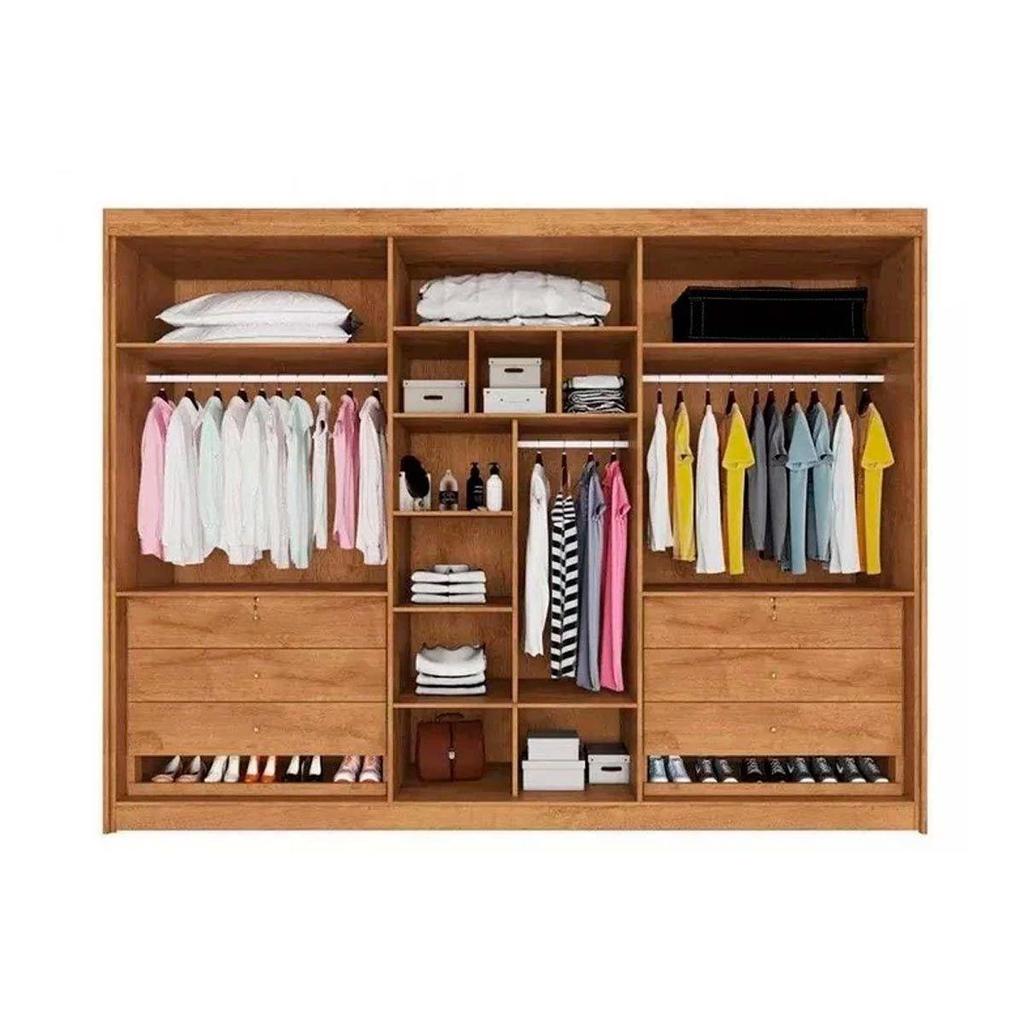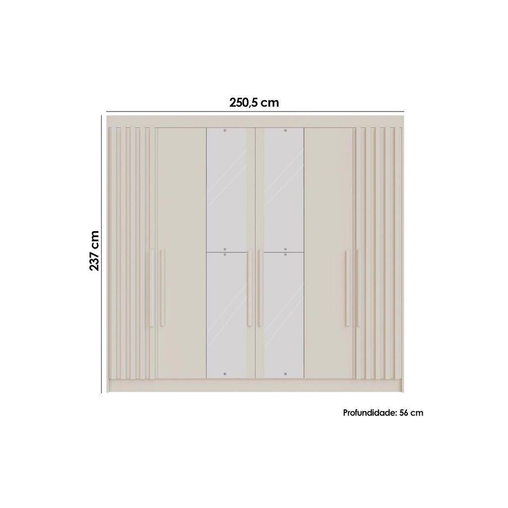 Guarda Roupa Casal 6 Portas (2 Ripadas e 2 c/ Espelho) e 6 Gavetas Potente Peroba/Off White - Europa