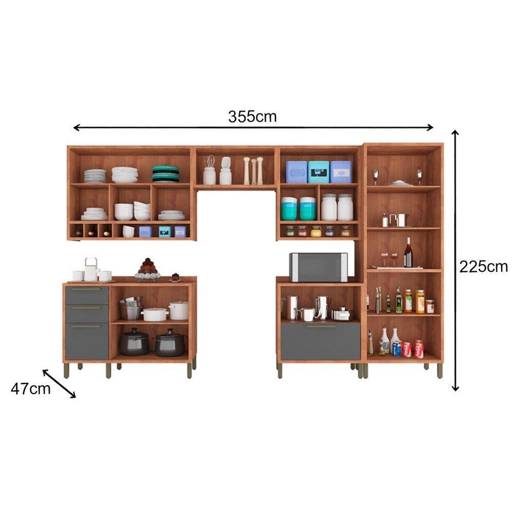 Cozinha Completa Syrah 6 Peças (3 Armários + 2 Balcões + 1 Paneleiro) 6P01 Sevilha/Branco - Ronipa