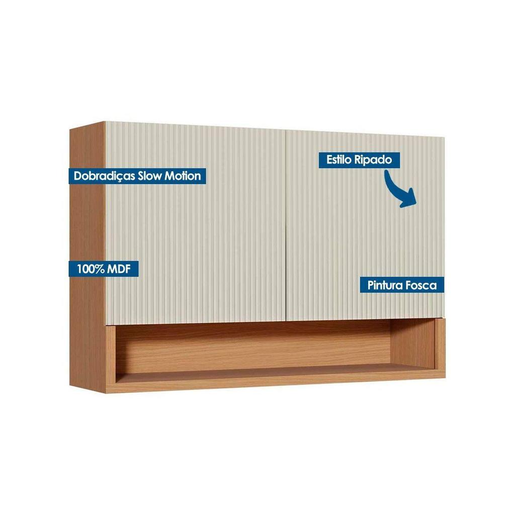 Módulo Cozinha Nesher Simone Mendes Armário Simone Mendes c/ 2 Portas 120cm Carvalho/Cinza-Nesher