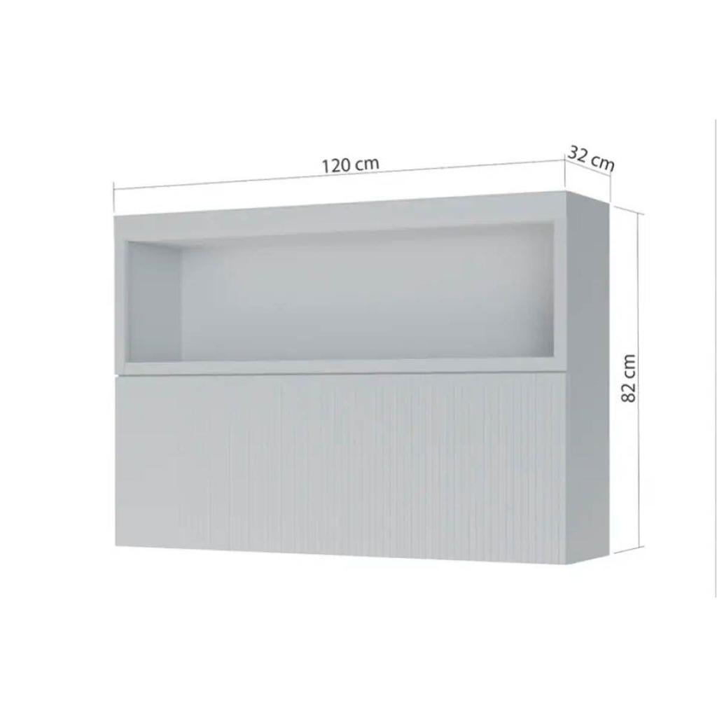 Armário Aéreo p/ Cozinha Marquesa c/ Nicho e 1 Porta Basculante Ripada 120cm Nature/Verde - Nesher
