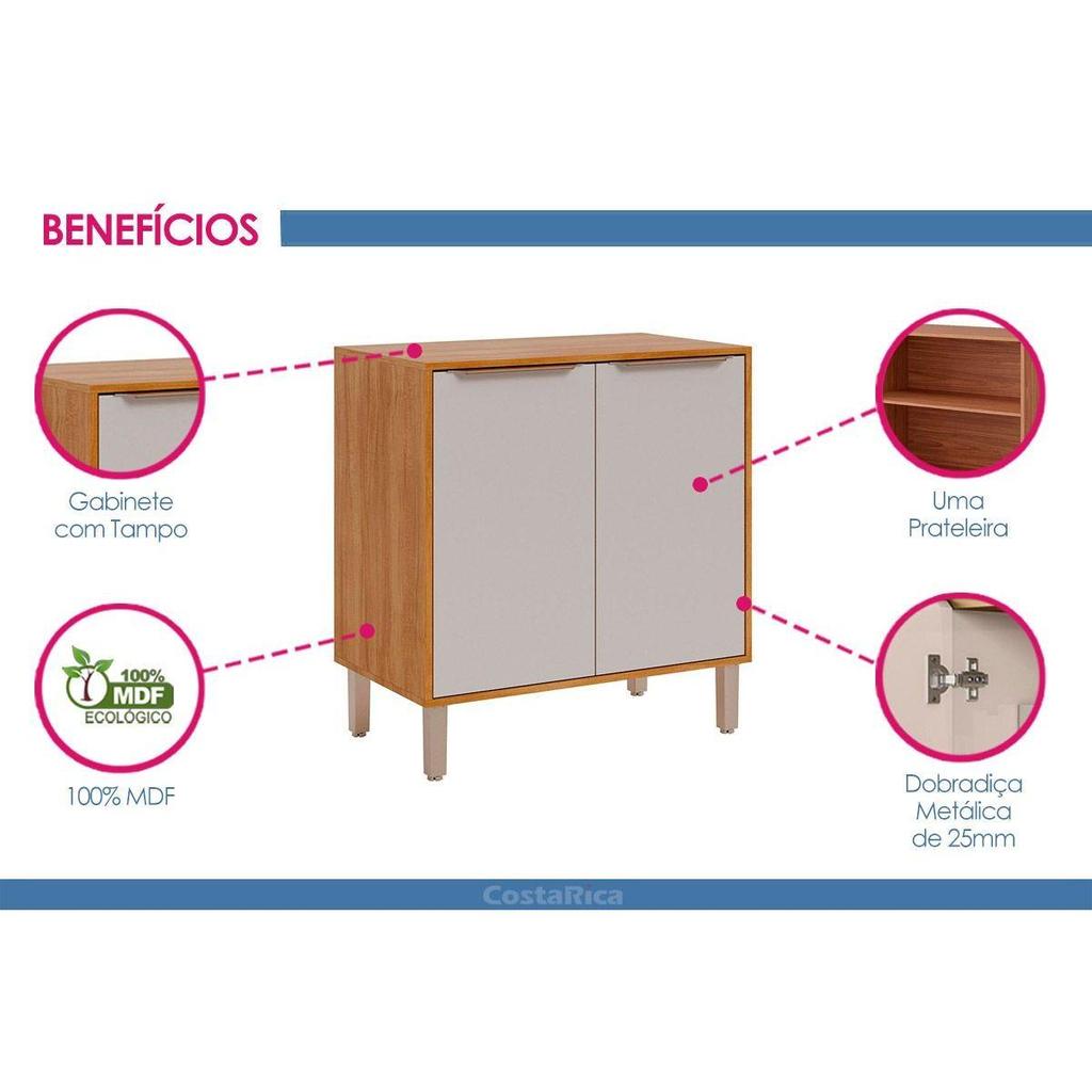 Balcão de Cozinha p/ Cooktop Divina 2 Portas 80cm Freijo/Off White - MGM