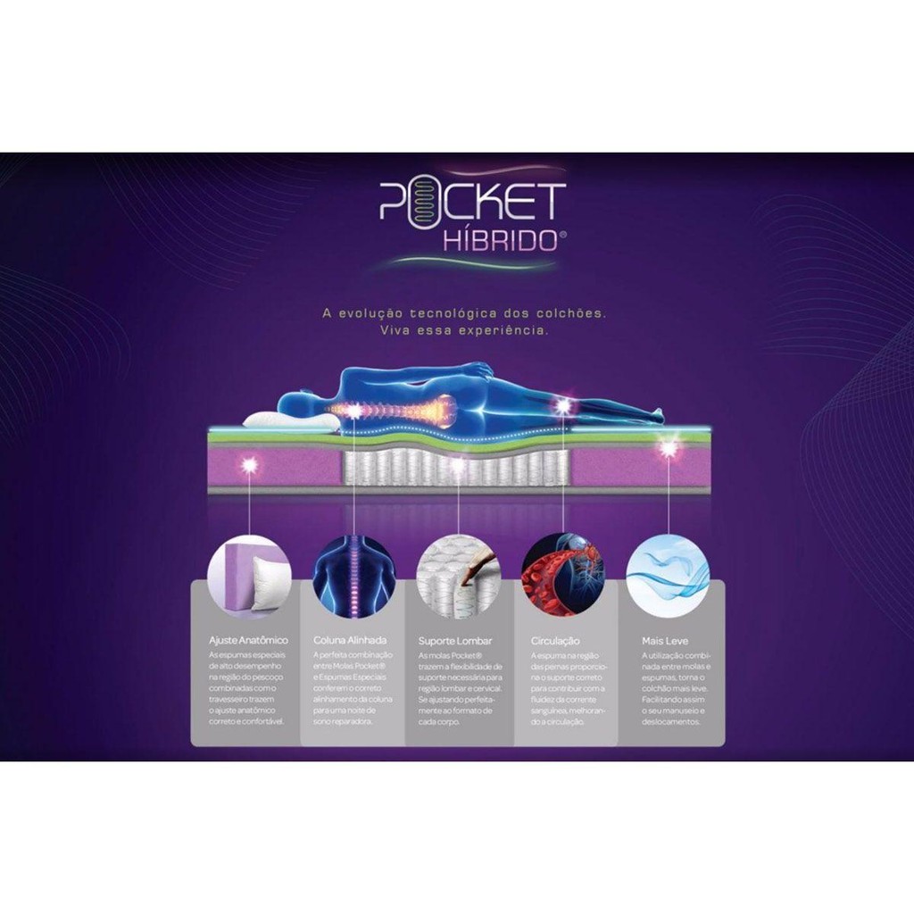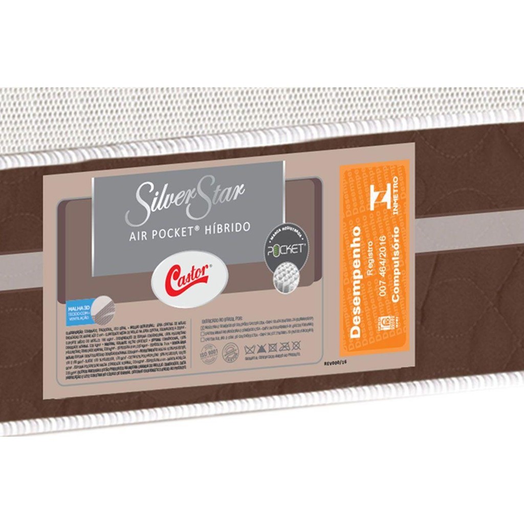 Colchão Casal Molas Ensacadaas Pocket Silver Star Air Híbrido Euro Pillow (138x188x32) - Castor