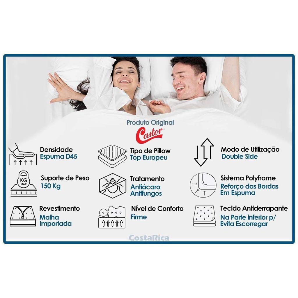 Conjunto Box Queen: Colchão Espuma Castor D45 Black e White AIR Double Face + Base CRC Suede Black(158x198)