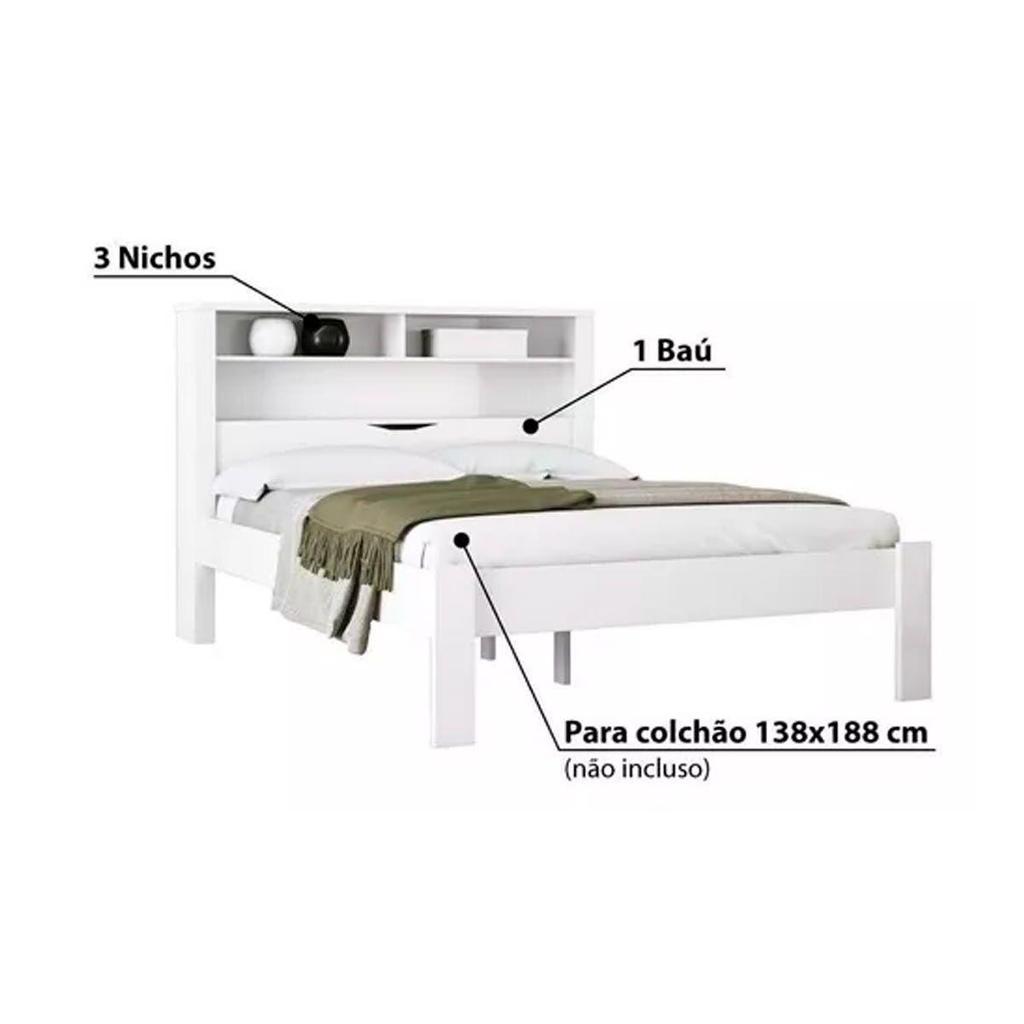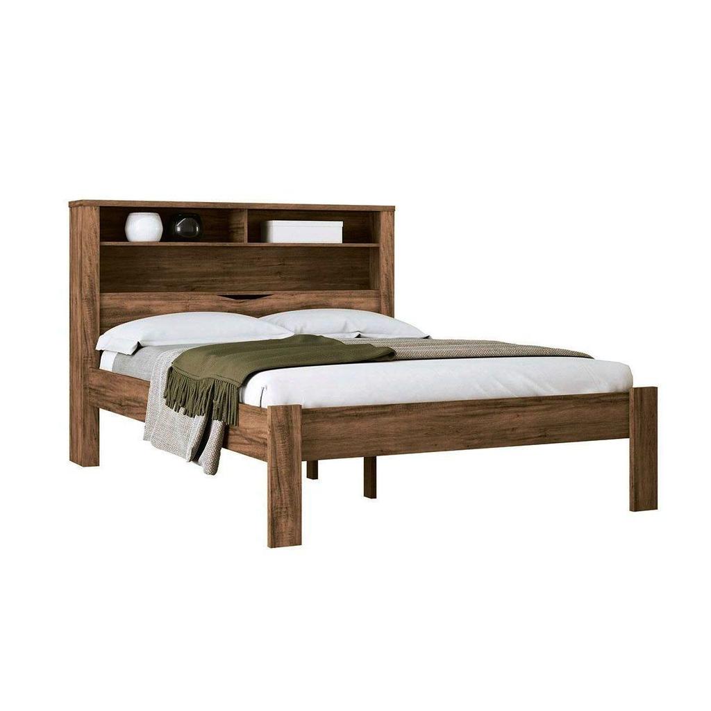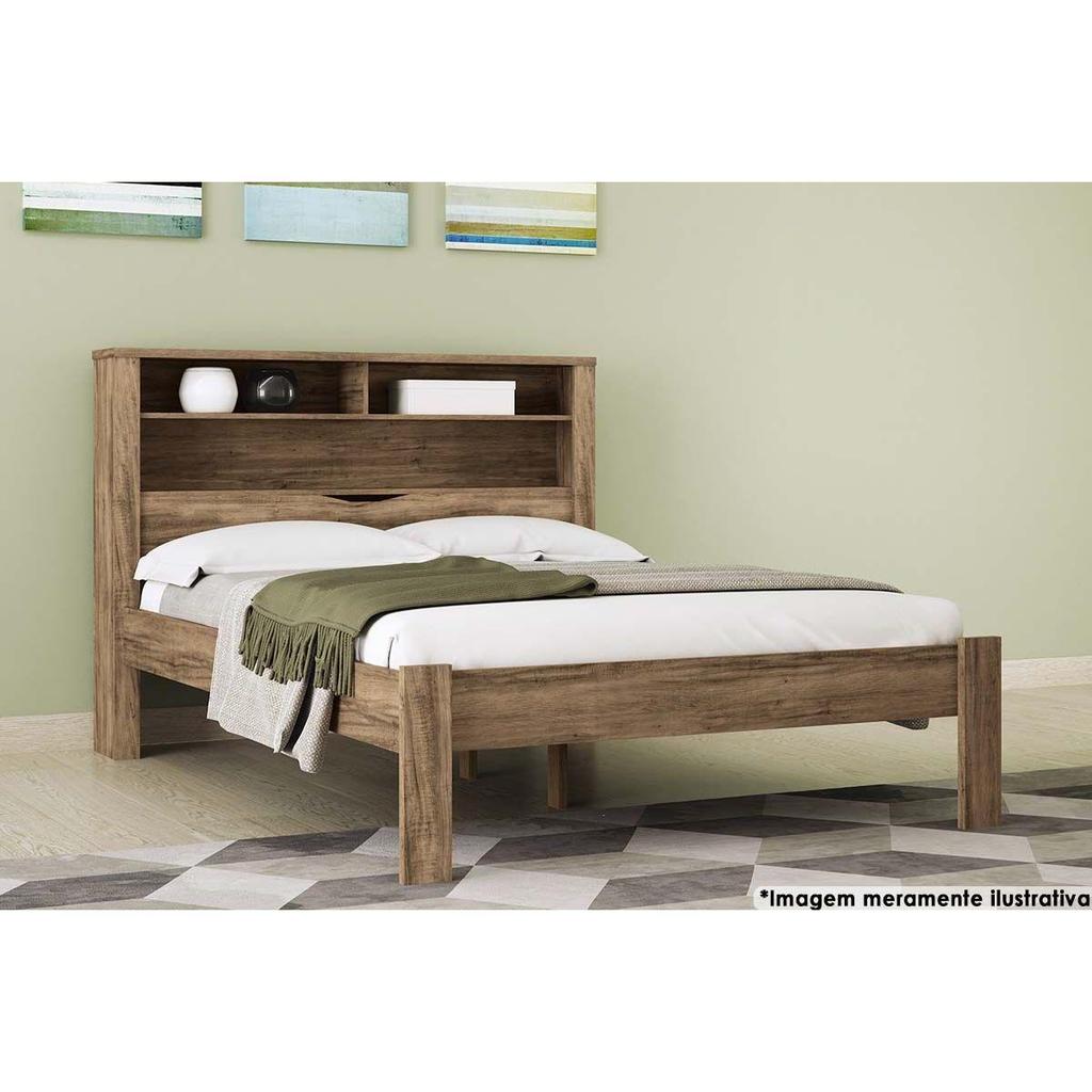 Cama de Casal Invicta com Baú + 2 Nichos Jatoba/Ebano - Santos Andirá