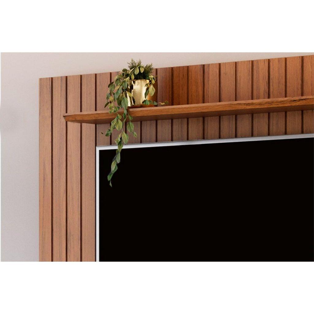Painel Home p/TV até 65 Polegadas Lume Ripado c/ Prateleira 175x108cm Cedro - DJ Móveis