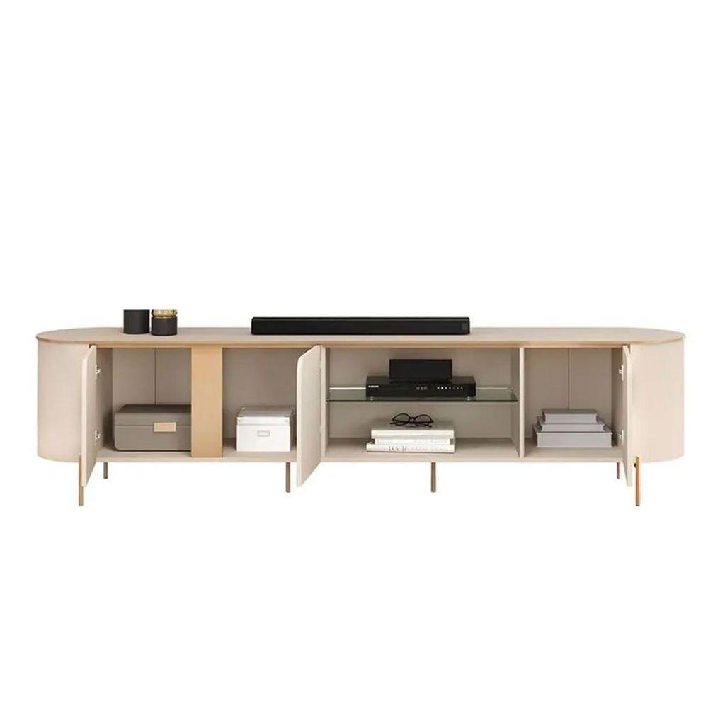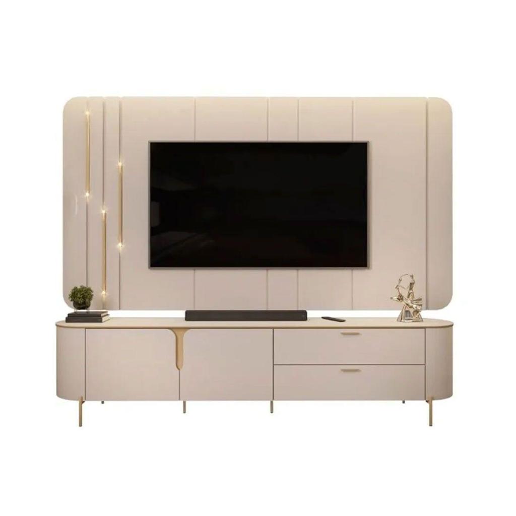 Rack Bancada c/Painel p/TV até 75 Polegadas Celine 100% MDF Led 241x189cm Off White - DJ Móveis